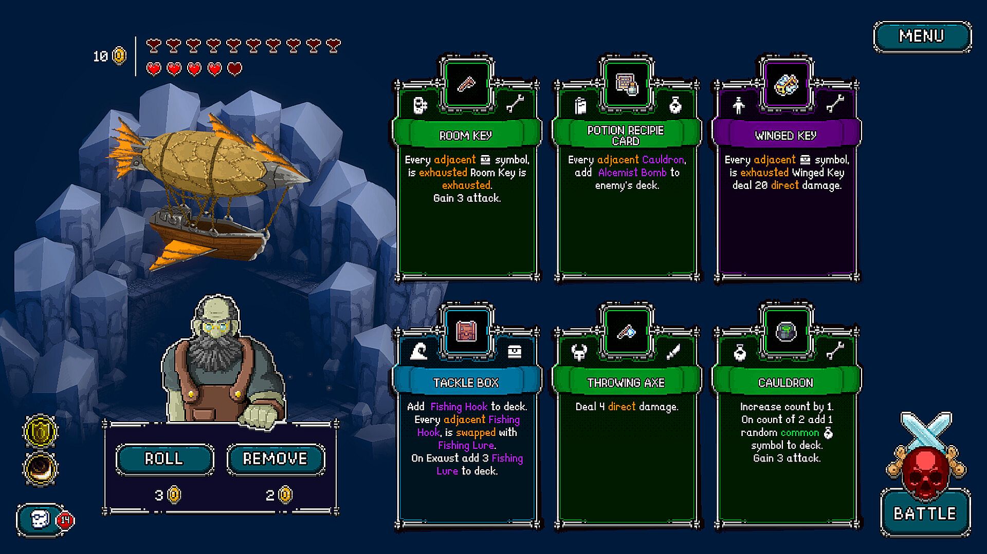 Stack the odds in your favor with over 200 rare and legendary symbols! Lock in key items for later, remove unwanted symbols to refine your strategy, or reroll the shop for a fresh selection after every battle. Craft the perfect slot machine and outplay the competition!