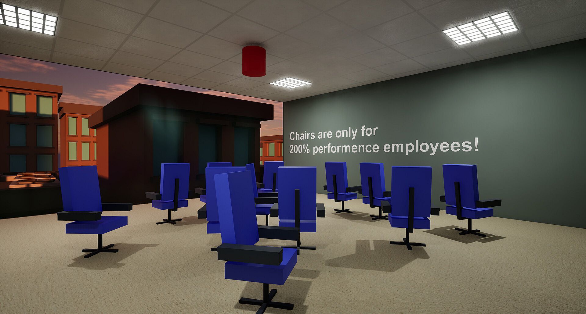 During the game, we will visit many floors, offices, open spaces, and warehouses, where we will discover what this company actually does and meet employees who do not agree to such treatment and even want to do something about it!