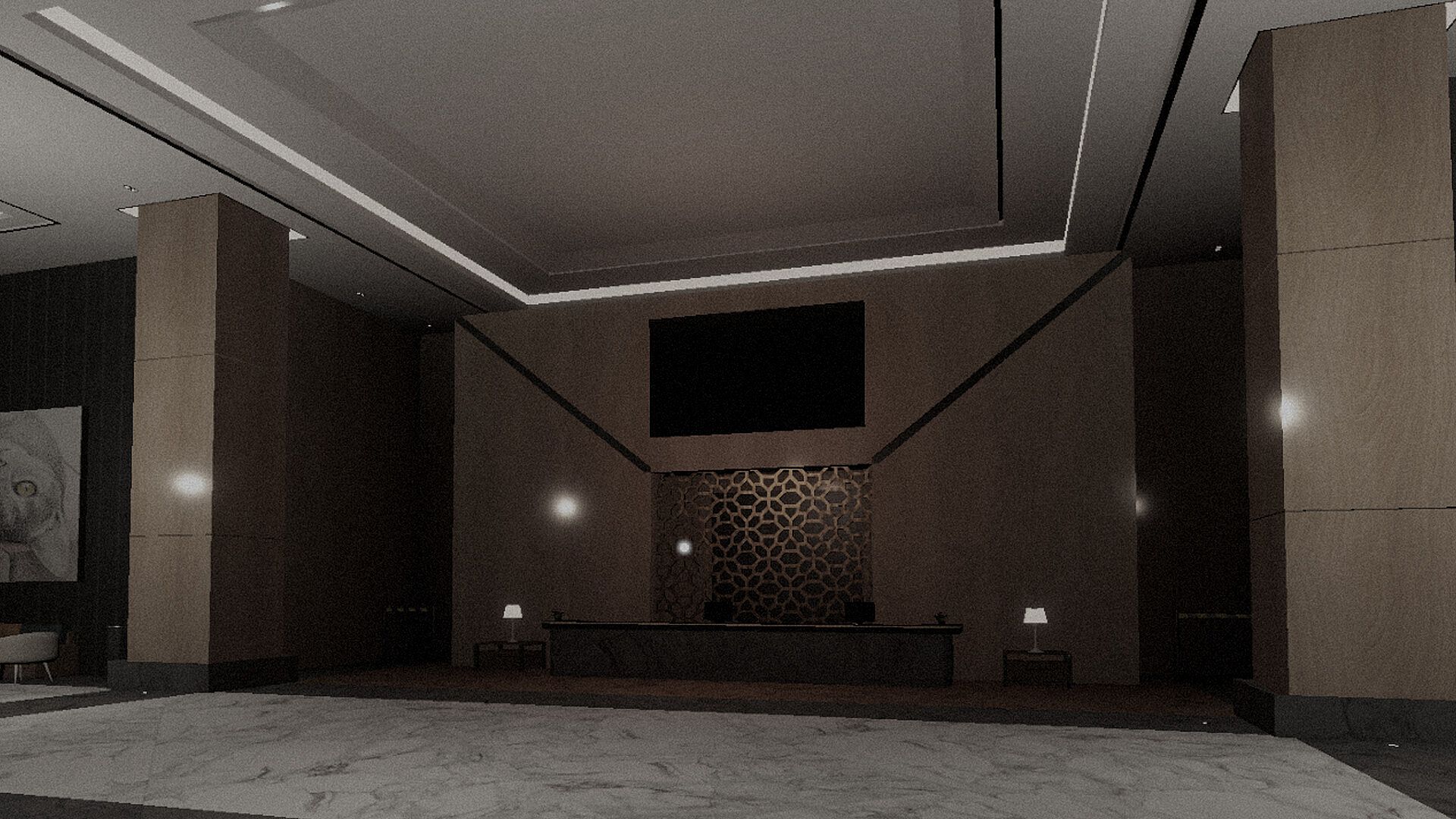 The spacious four-story hotel is the game's main stage and features a detailed map design with various interactions, parking lots, power plants, and more.