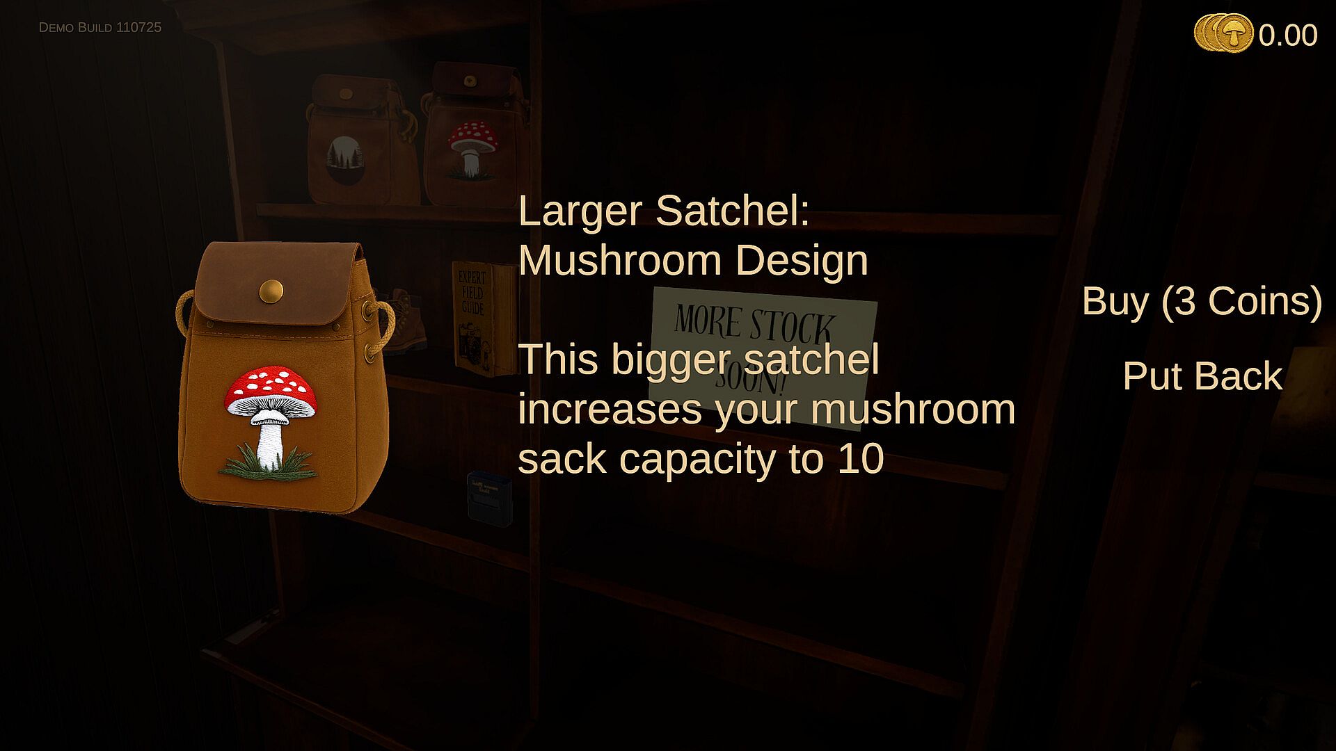 • Satchel – Pick and store your mushrooms to sell later. Limited space means smart choices.