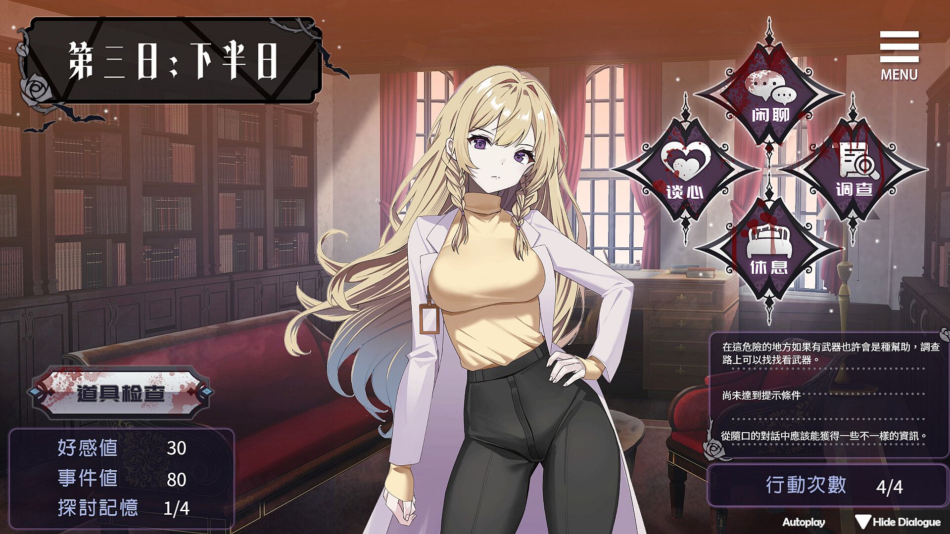 As you gain experience, Hetty will remember more of her past and change her attitude towards you based on various values such as Favourability, Events, Sanity Value, etc., and the secret of the old castle seems to be coming out. ......