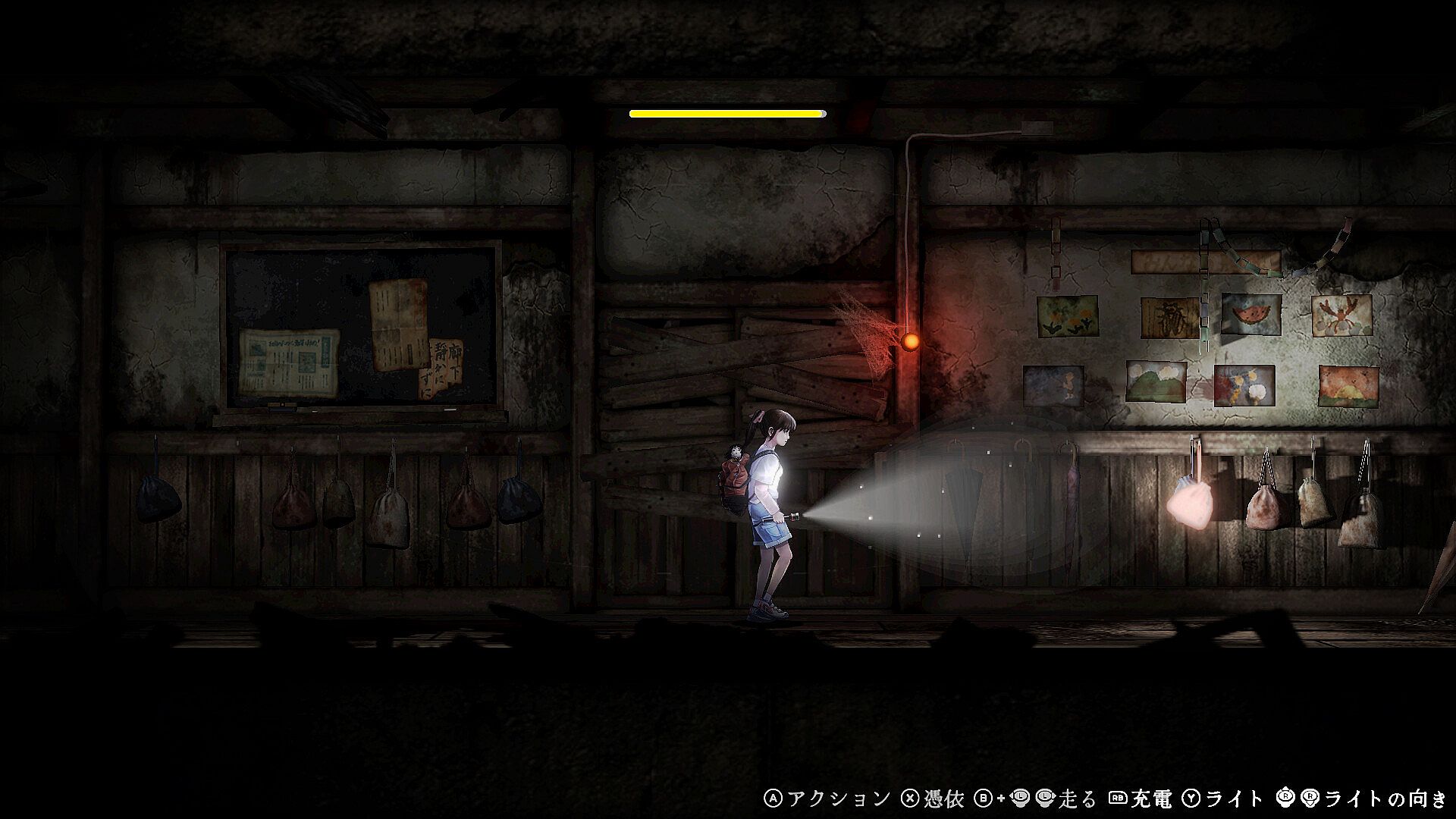 The player controls Himari, the main character, and Komari, a Japanese doll inhabited by a grudge spirit, as they search for their estranged family and classmates in the school, where blue demons roam.