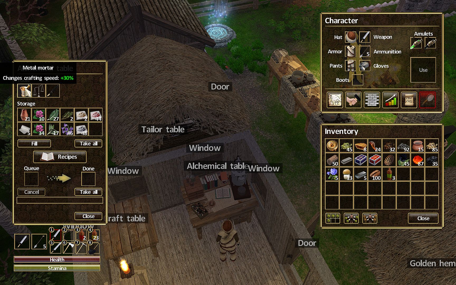 The player will explore more than 10 different zones, each with its own unique flora and fauna. You can gather and mine resources, create weapons and clothes, build houses, different crafting tables, laboratories and grind your character. Look for useful plants, grow them on seedbeds and domesticate animals to get a stable supply of food. Build portals for faster movement around the world and use map in order not to get lost.