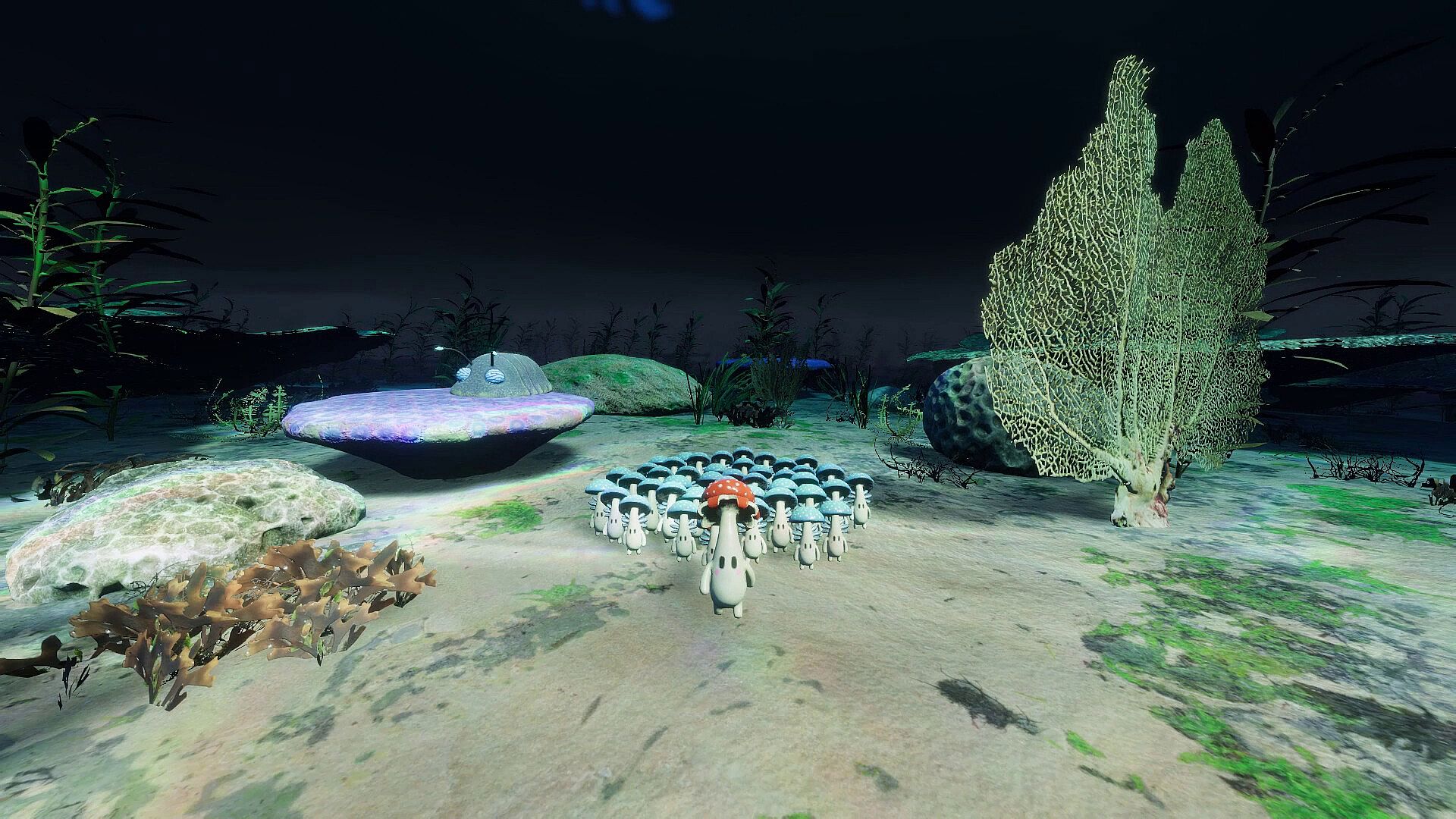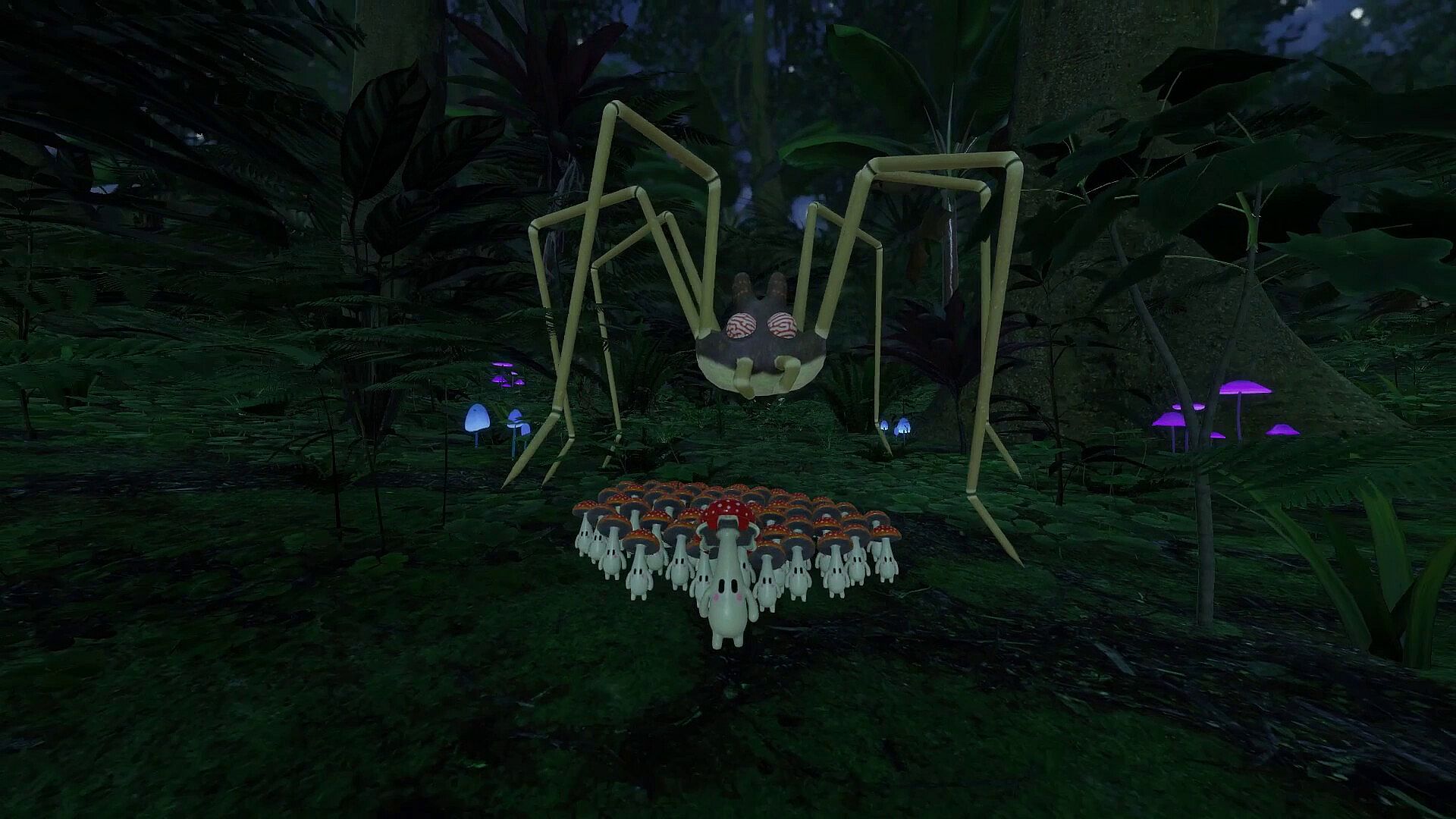 Send mushkin to collect fruits, defeated enemies, and other resources to grow your colony