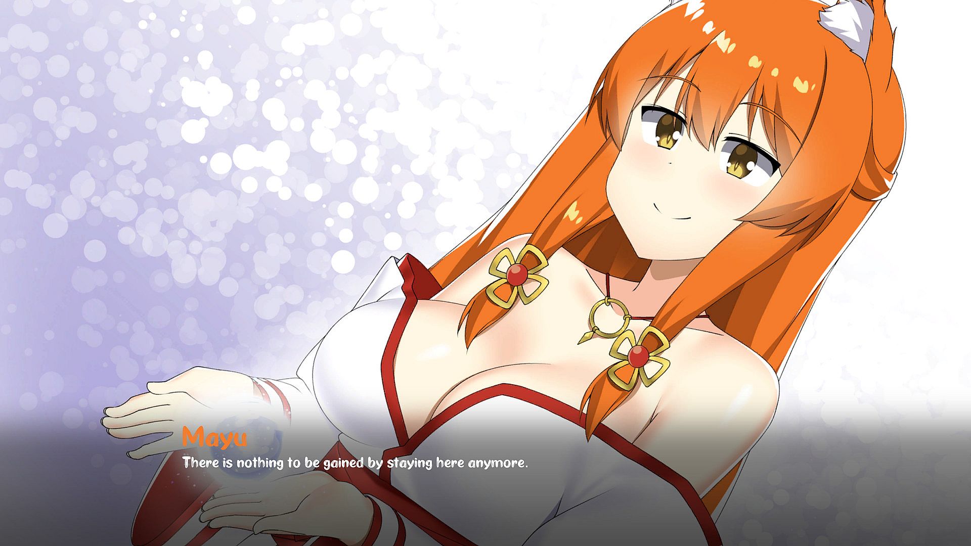 After collapsing in a forest while trying to make it to the local port before winter sets in, a lone merchant, Anna, wakes up in a pristine shrine. It doesn't appear as though anybody else is there, with the exception of the caretaker, a kitsune who introduces herself as Mayu. Being the guardian of the forest, Mayu laments the fact that, with the exception of Anna, she has not had any visitors to her shrine in many, many years. Yet duty calls, and she is a very diligent fox girl.