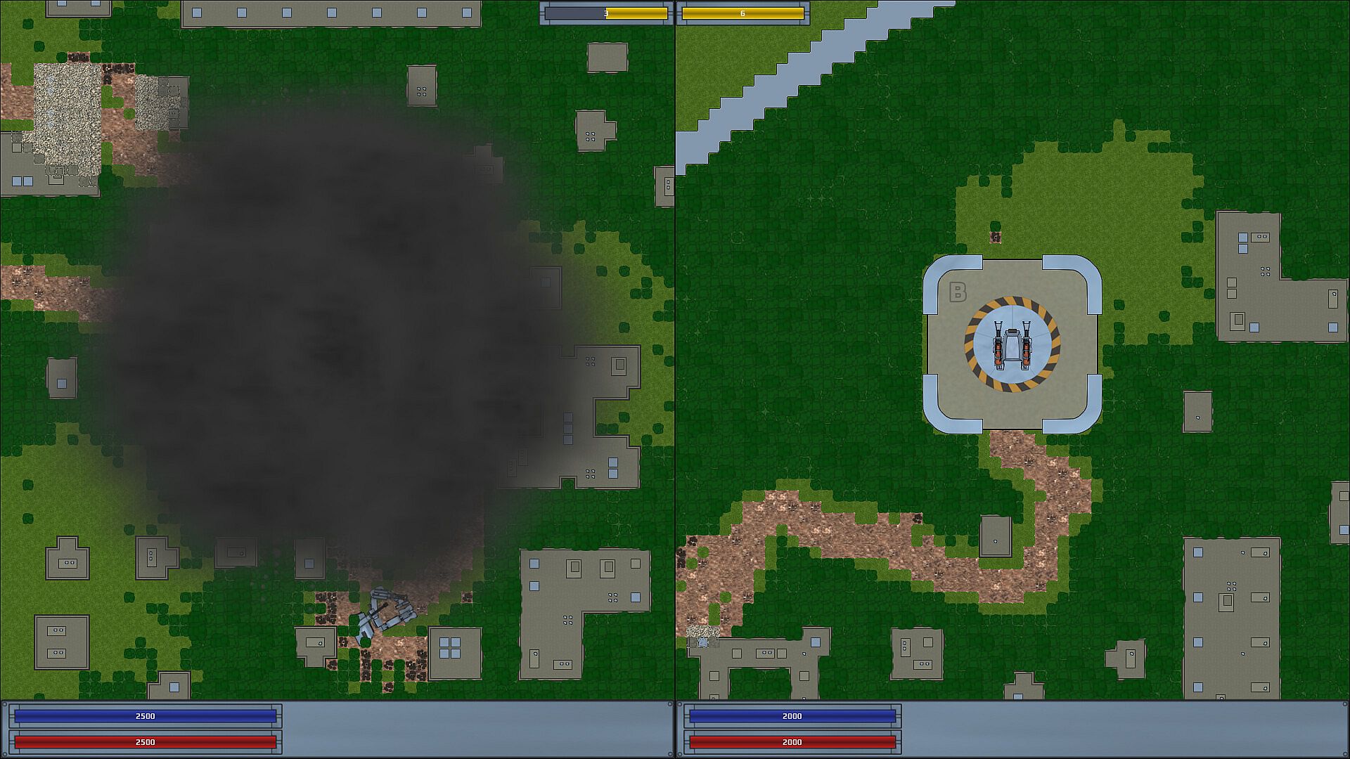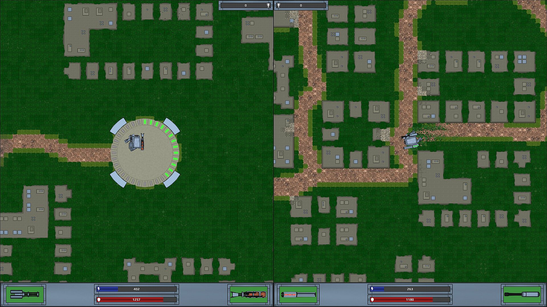 Forgotten mechs have awoken in their underground bases. Now they must continue their unfinished battle. Do you have the skill to operate them? Try it in this quick 2D action game for two players. Arm your weapons and destroy the enemy!