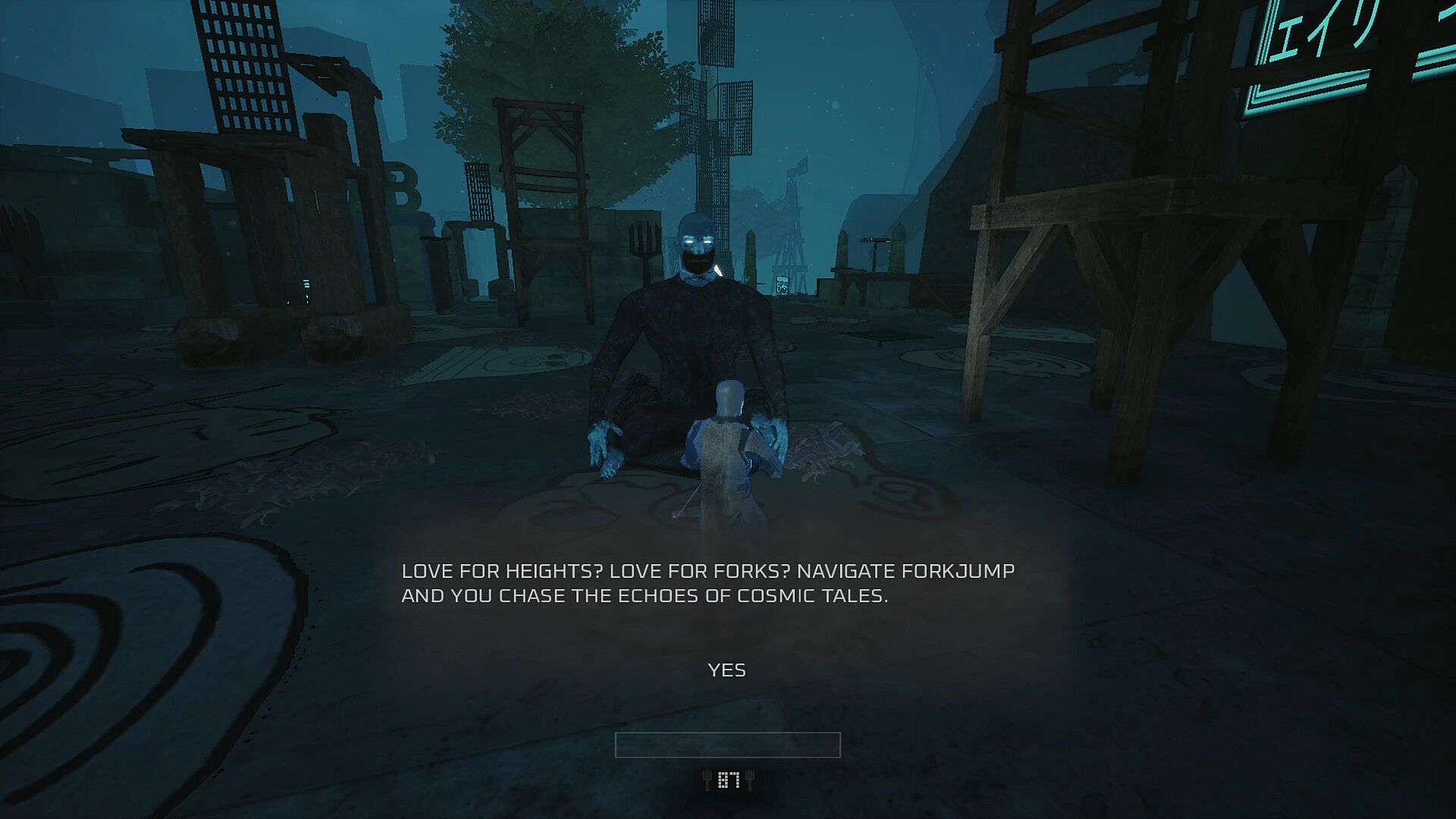 ForkJump is a single-player, third-person exploration game that combines 3D platforming with a captivating, horror-themed adventure set in an open-world sci-fi environment. Players must be cautious of disturbed jumping fork monsters and other hazards such as hidden fork-jump-scare traps. Amidst this atmospheric, dark and fork-obsessed playground governed by physics mechanisms, players navigate through lands filled with mysterious robots, unexpected characters, formidable enemies, challenges, complex structures, and many forks. Players are encouraged to harness swift parkour movements and utilize the innovative "ForkJump Gun" to teleport and navigate the world, where mastering momentum physics is crucial. In ForkJump, players can expect to spend considerable time at high altitudes, jumping, teleporting, and soaring through the air, leveraging the game's unique physics mechanisms.