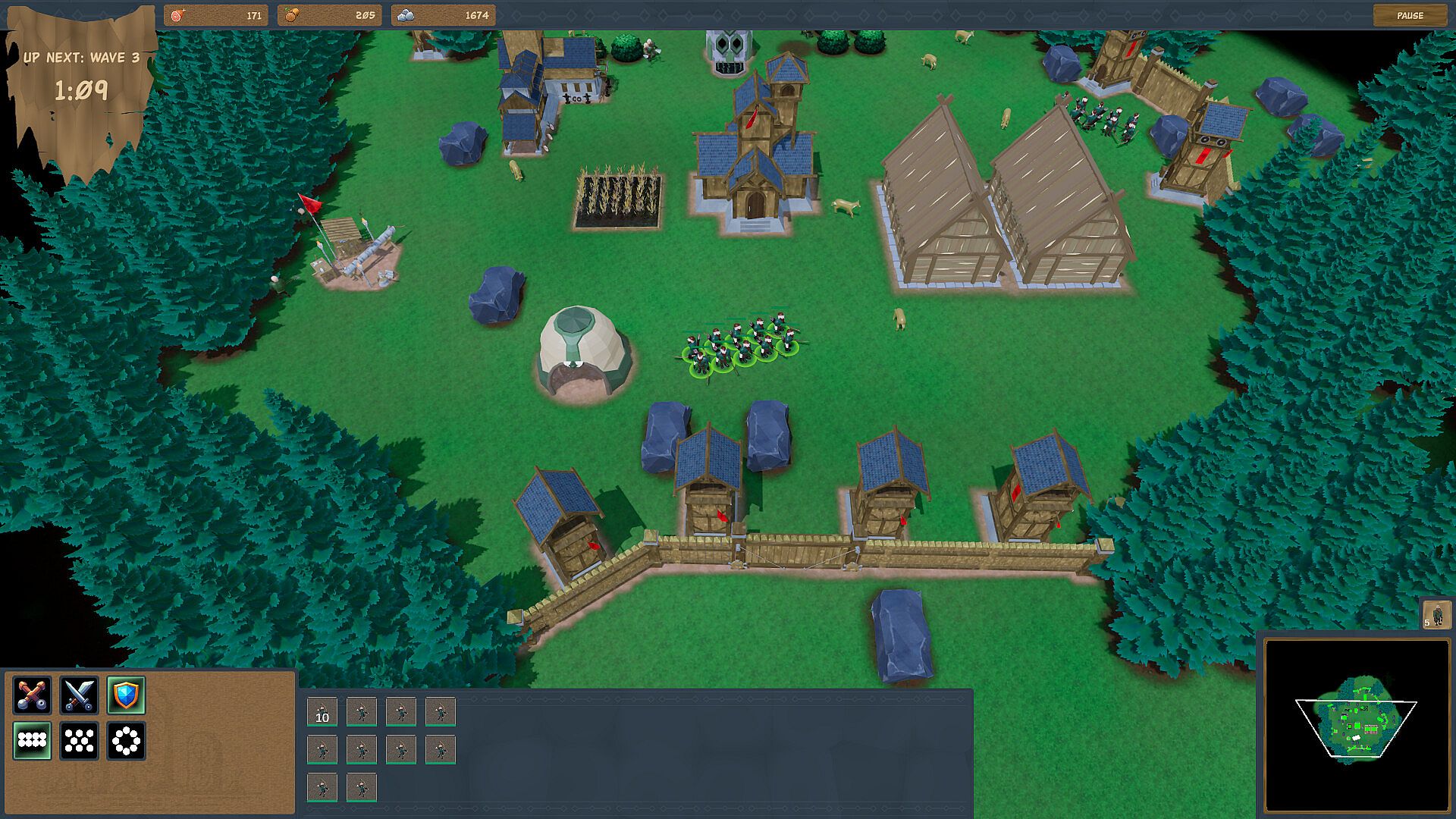 Assign villagers to gather essential resources—wood, stone, and food.
