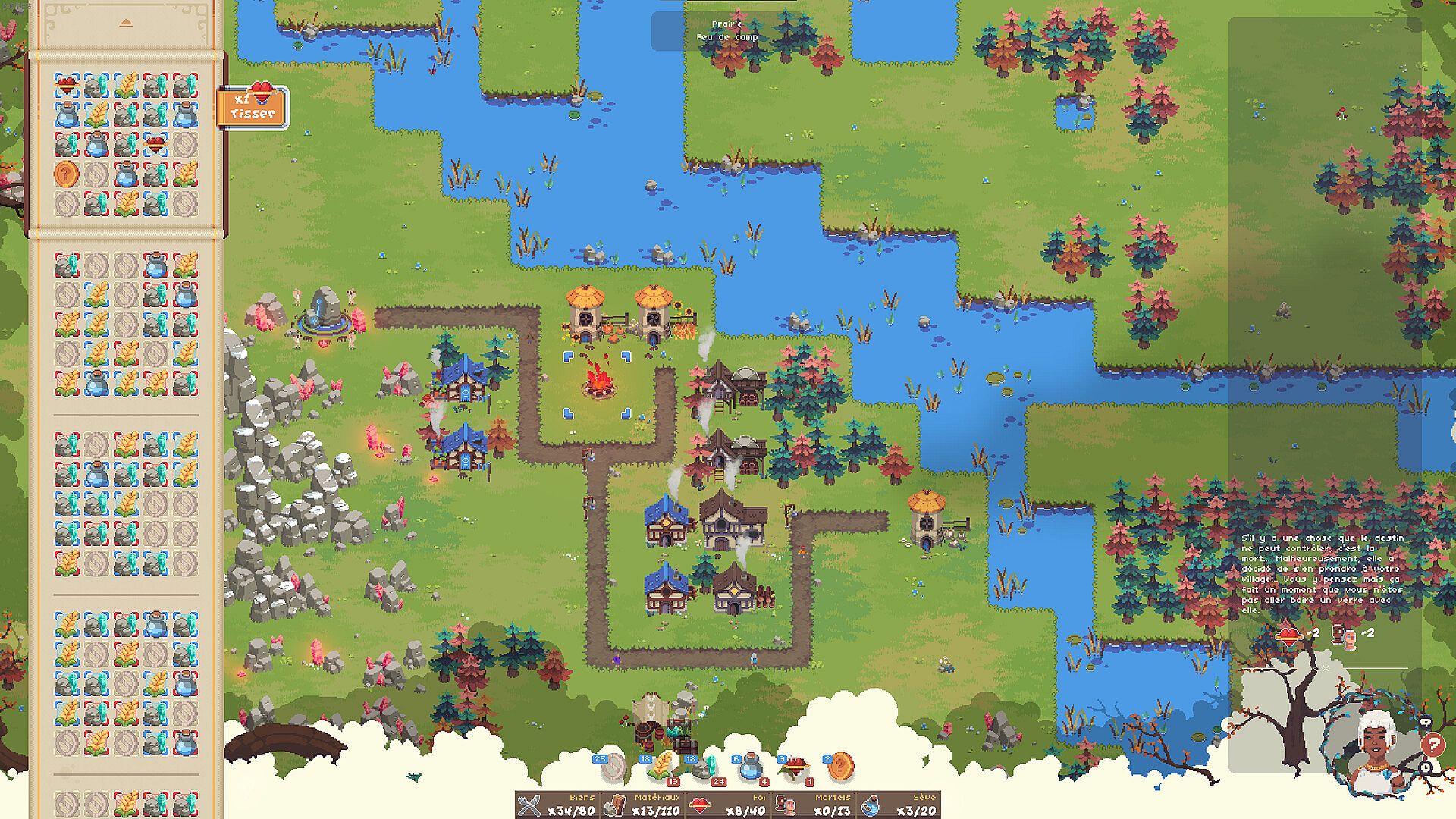Thanks to its sparkling and pleasant pixelart, as well as its relaxing music and calm sound environment, you will be able to build and play in all tranquility. Moreover, the game only progresses when you weave the destiny. You can progress at your own pace. Whether you succeed in your objectives or fate does not smile on you, no worries, you can progress thanks to a metaprogression between each of your cities