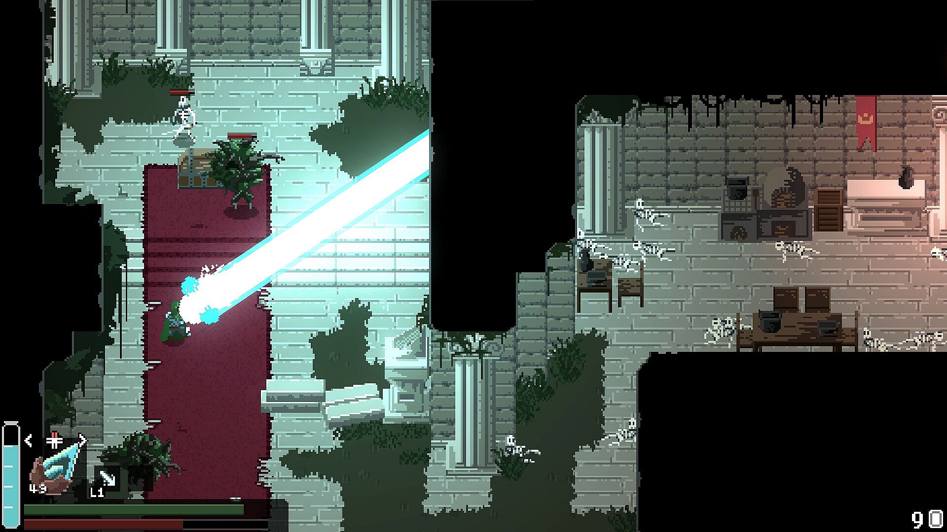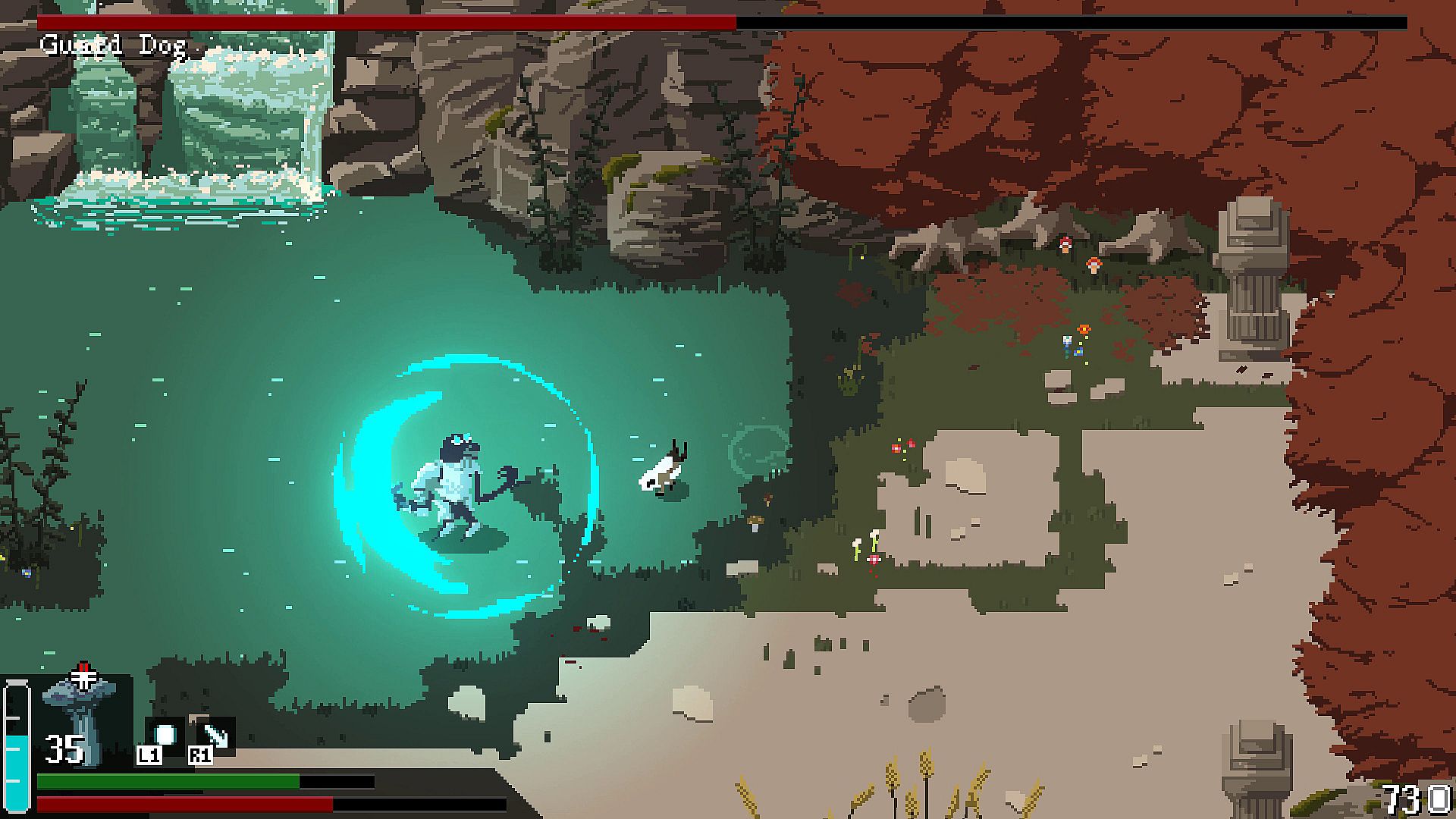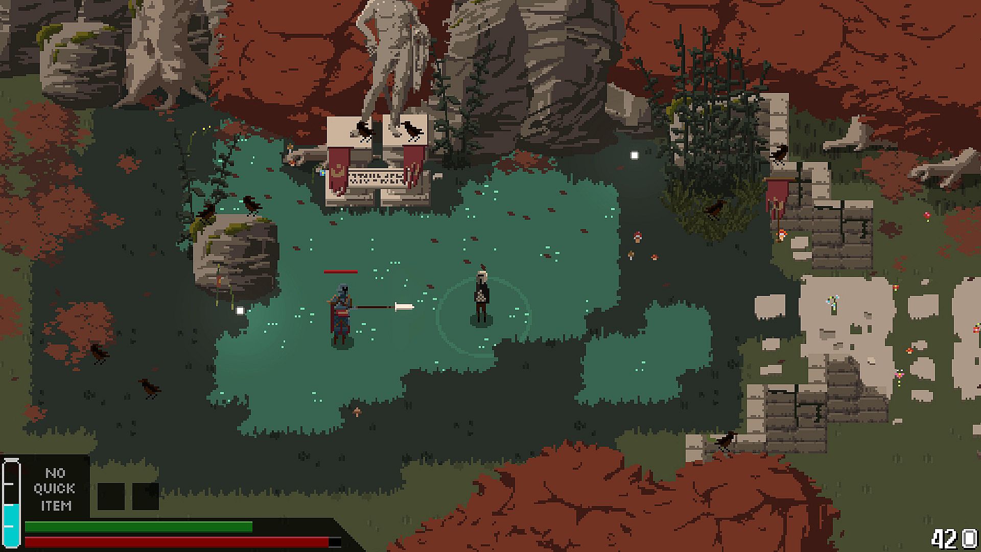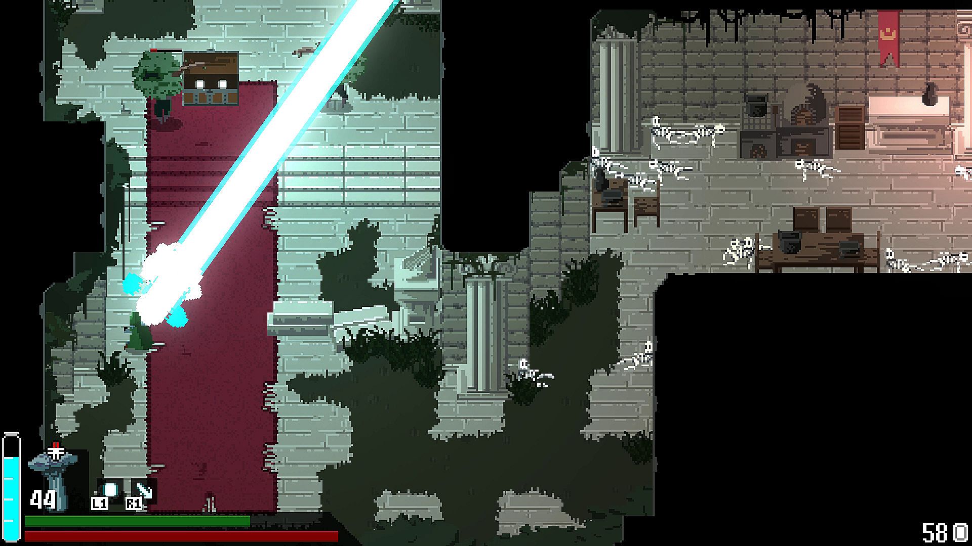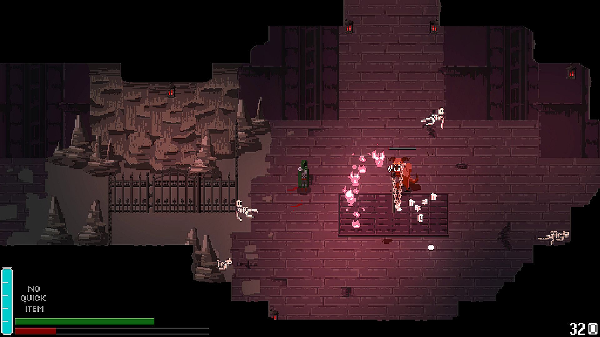 The world of FOUNTAINS is designed as one giant dungeon. It is a tightly packed labyrinth which twists and loops back on itself. You'll constantly find new items, powers and upgrades to unlock new parts of the world.