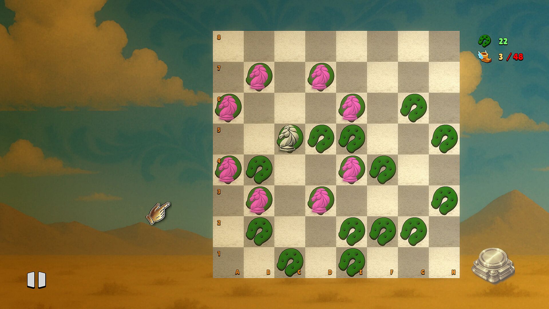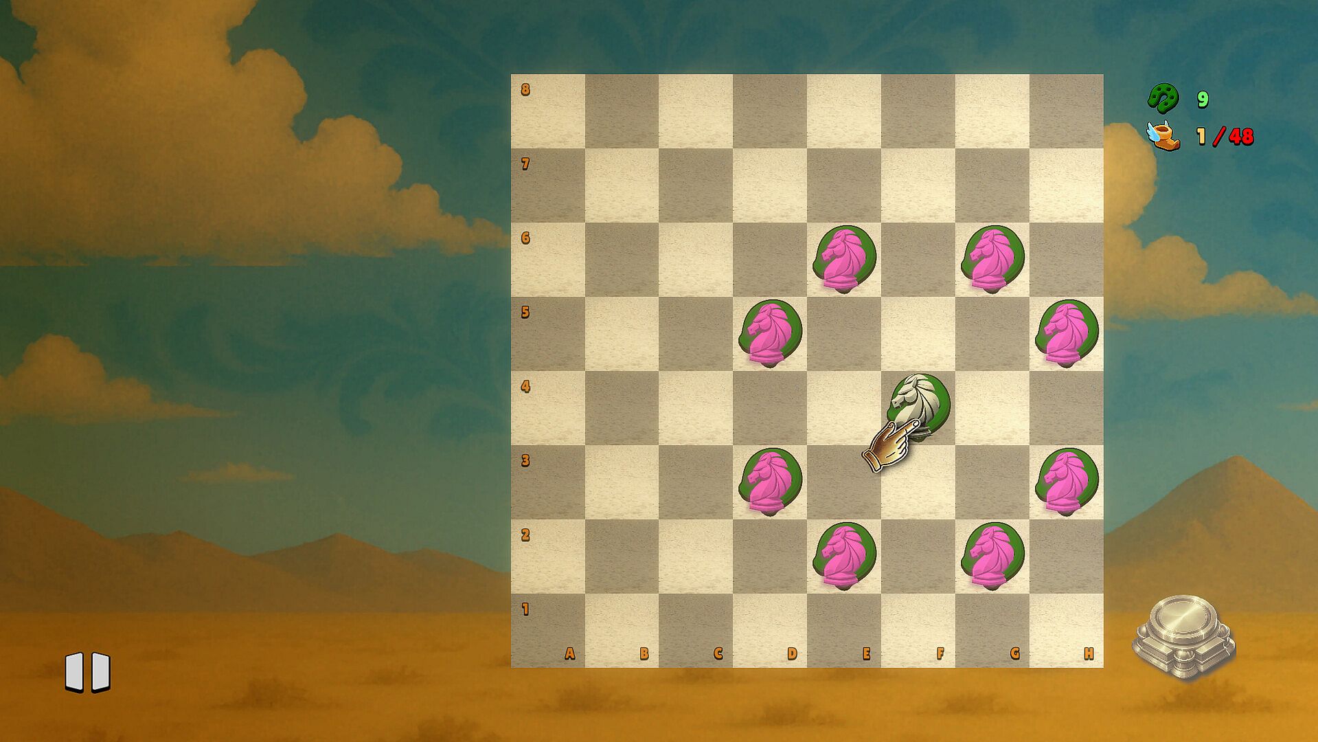 Four Knight Variant is a thoughtful, challenging single-player 2D puzzle game inspired by the unique movement of the knight in chess. Your task is simple in concept but complex in execution: place a knight on the board and move it according to standard chess rules, aiming to visit as many squares as possible before you run out of moves or legal options.