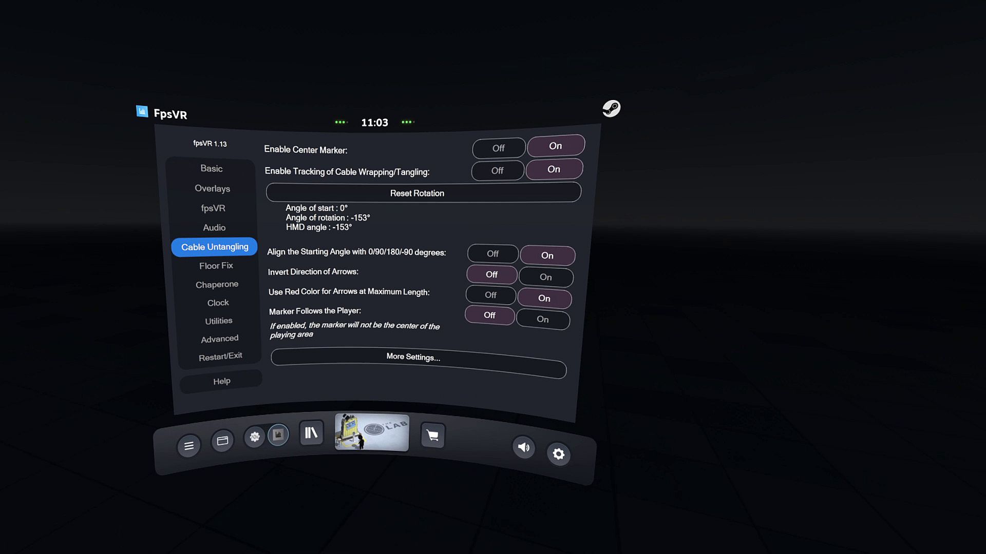 Utility for SteamVR for keeping track of FPS, frame time and other performance metrics in the in-game overlay. Easily change SteamVR settings in the fpsVR settings overlay in the SteamVR dashboard. Headset cable twist tracking and other useful features.
