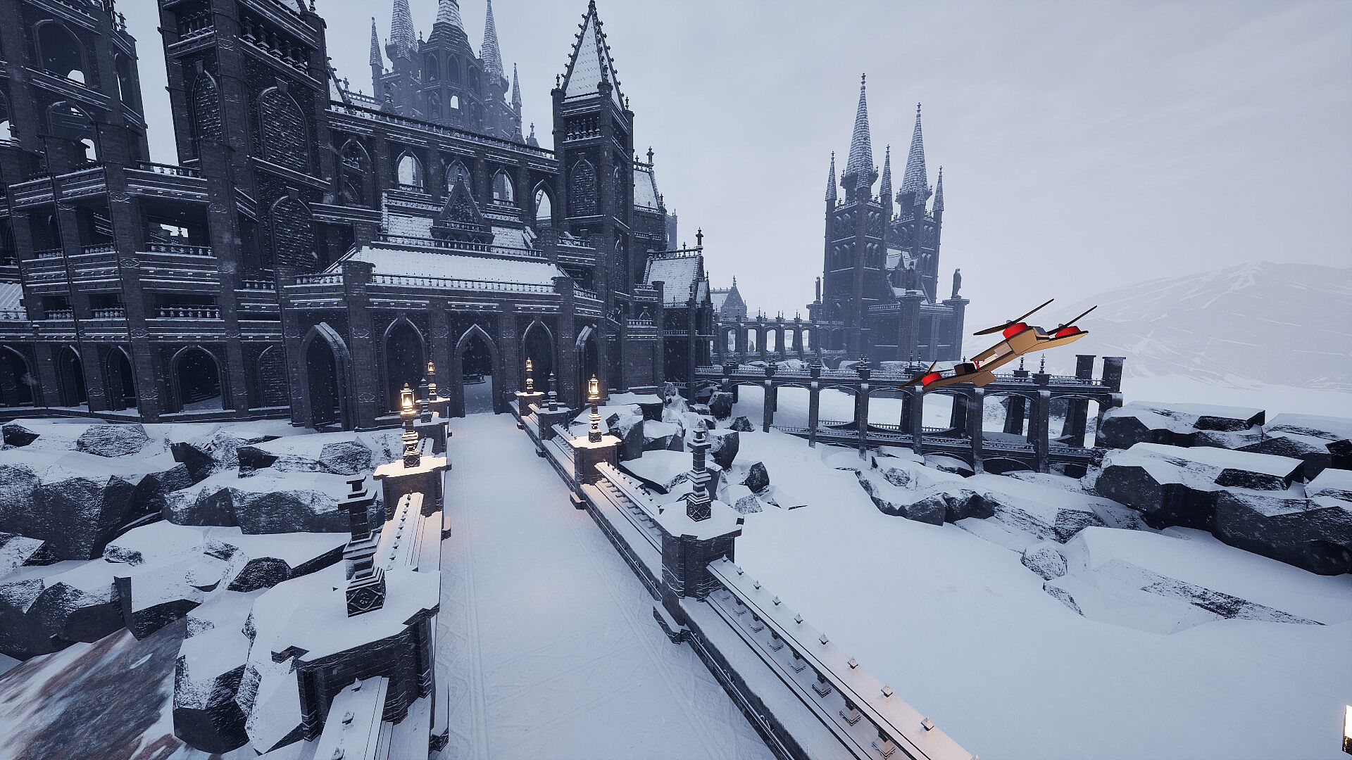 FPV Skyline’s other headline trick is deep customizability: a full toolbox of editors lets you sketch, tune, and field your own airframe, lay out dream tracks, and craft every last detail of the world you fly in.