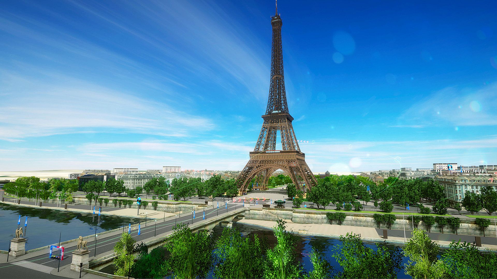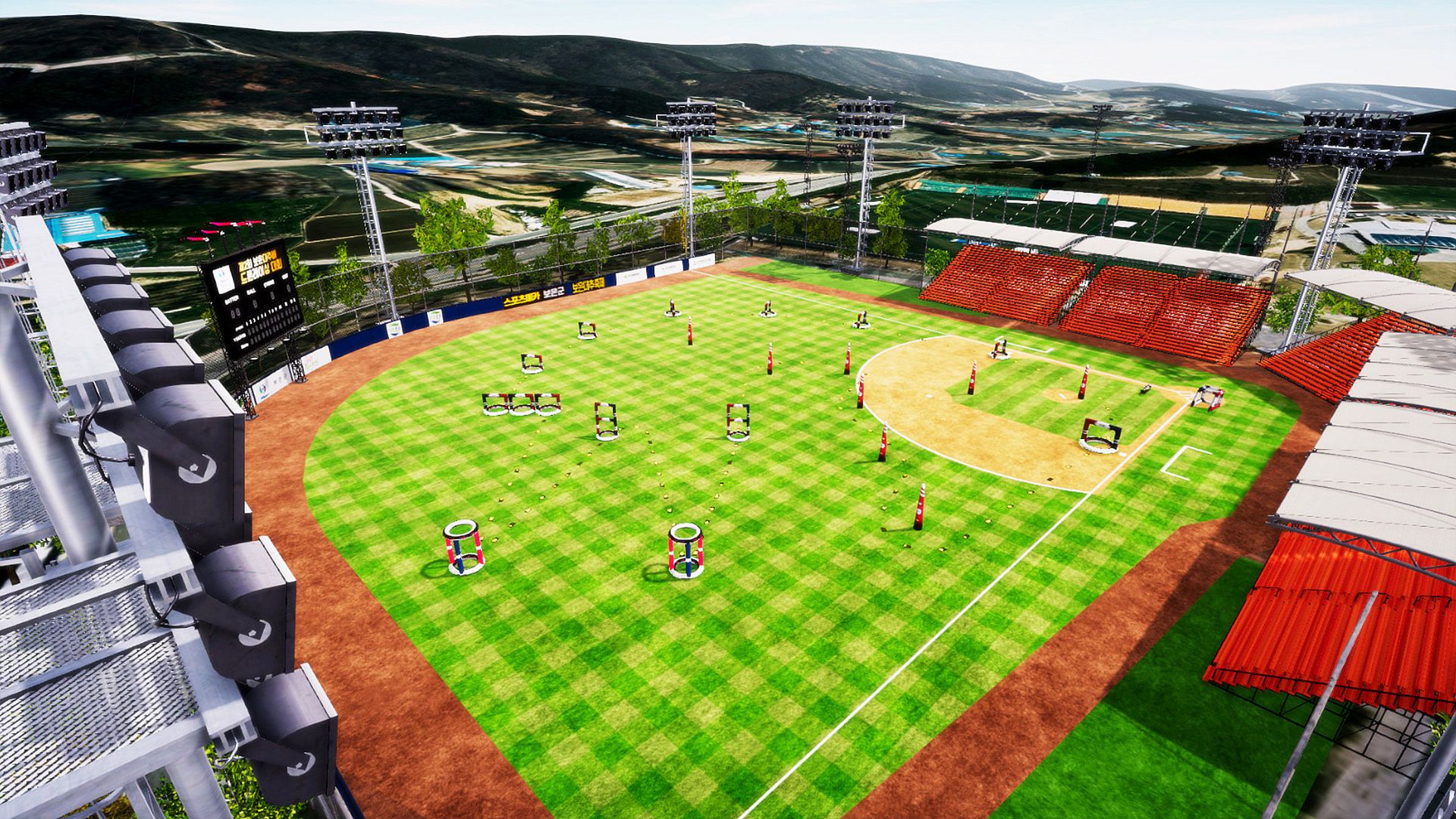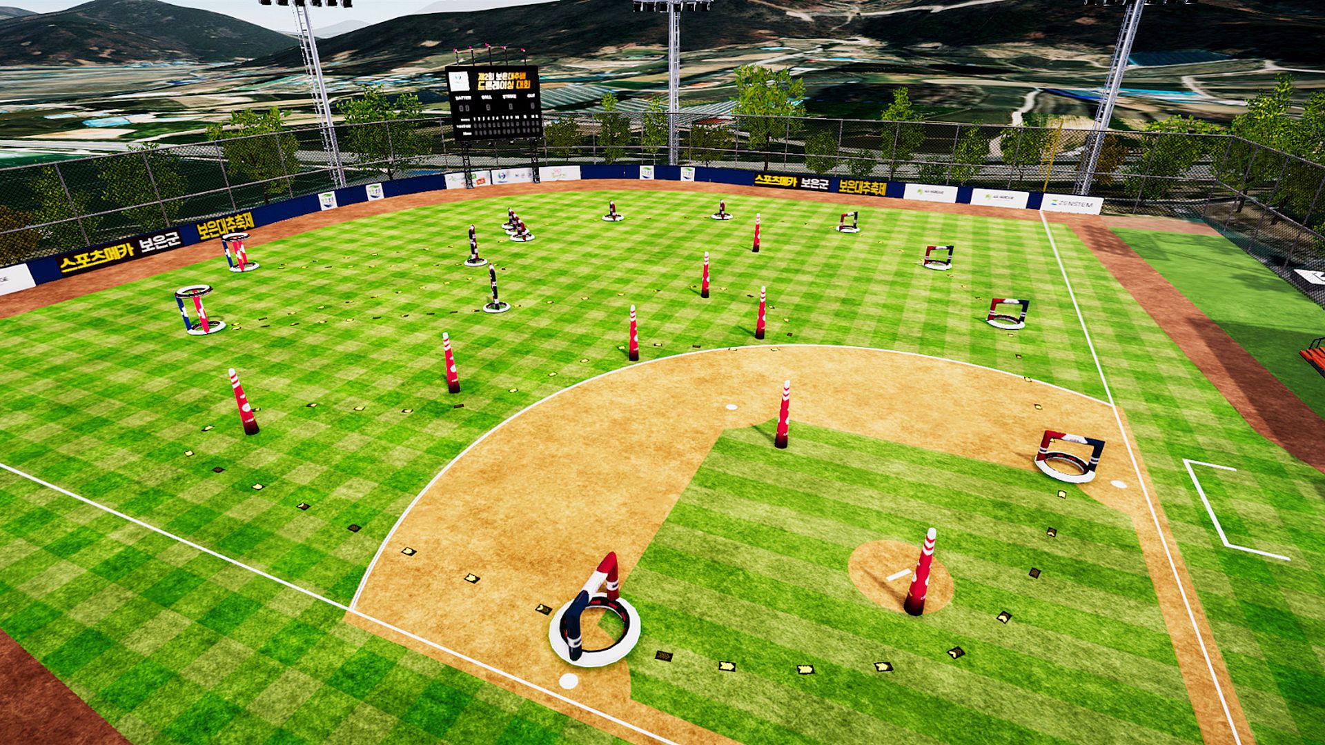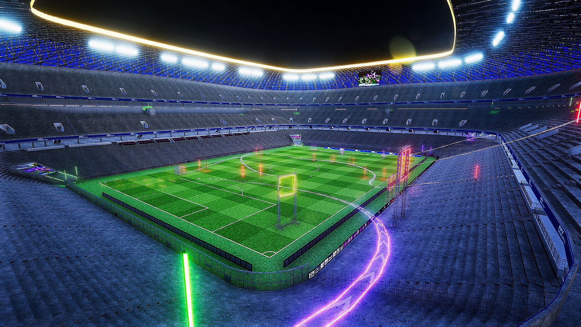The tracks on which the actual game was played andthe surrounding environment are organized as closely as possible,