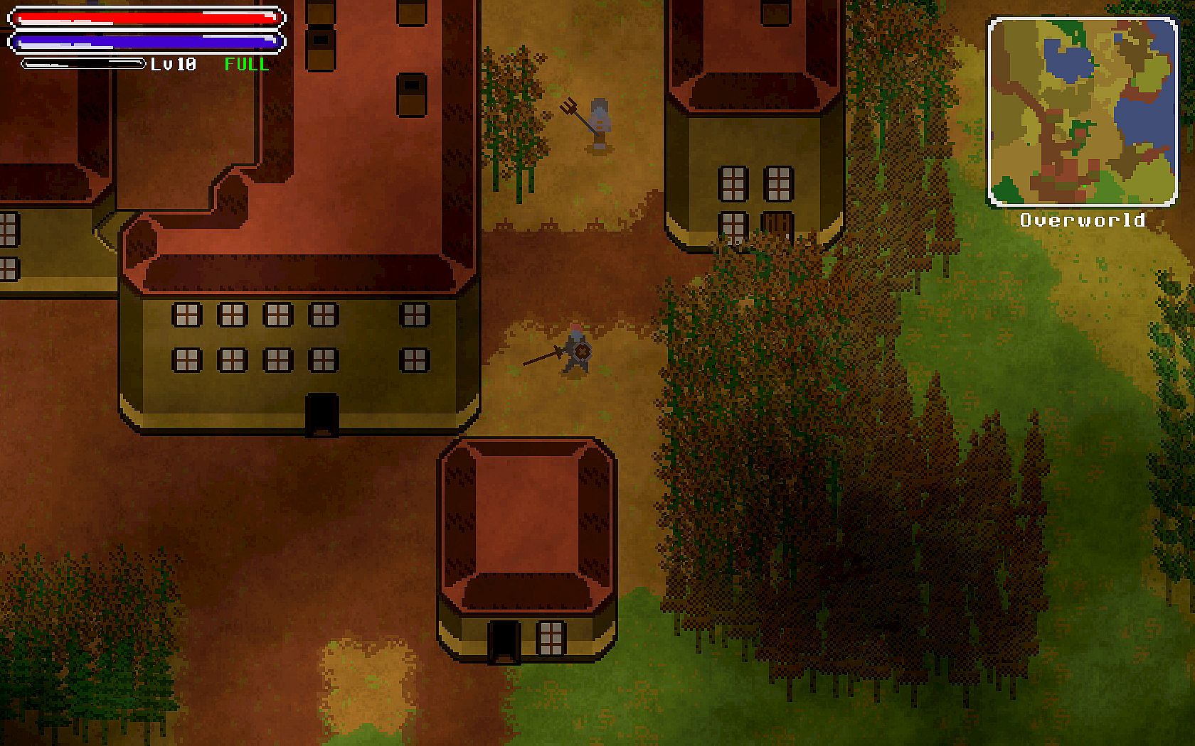 Each world that is generated has its own unique monsters to fight, and areas to explore. In the combat system you can attack with melee weapons, ranged weapons, throwing weapons, and magic attacks. Different weapons have their own attack areas, and effects. As you travel though numerous levels below the overworld, you will fight menacing monsters, find interesting items, weapons, and equipment that will aid you along your journey.