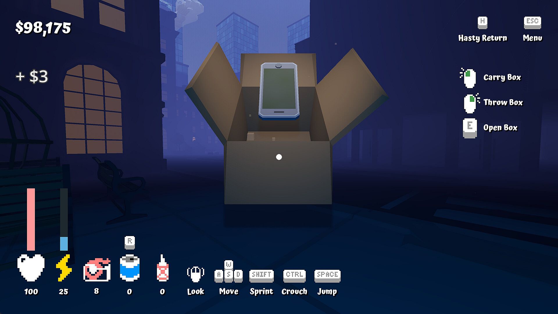 Leap from package to package in this 'build-your-own' platformer challenge with a daily anomaly challenge. How high will you go? And what will you uncover in the clouds? Collect and open packages to earn cash, then upgrade your stats and items to climb even higher.