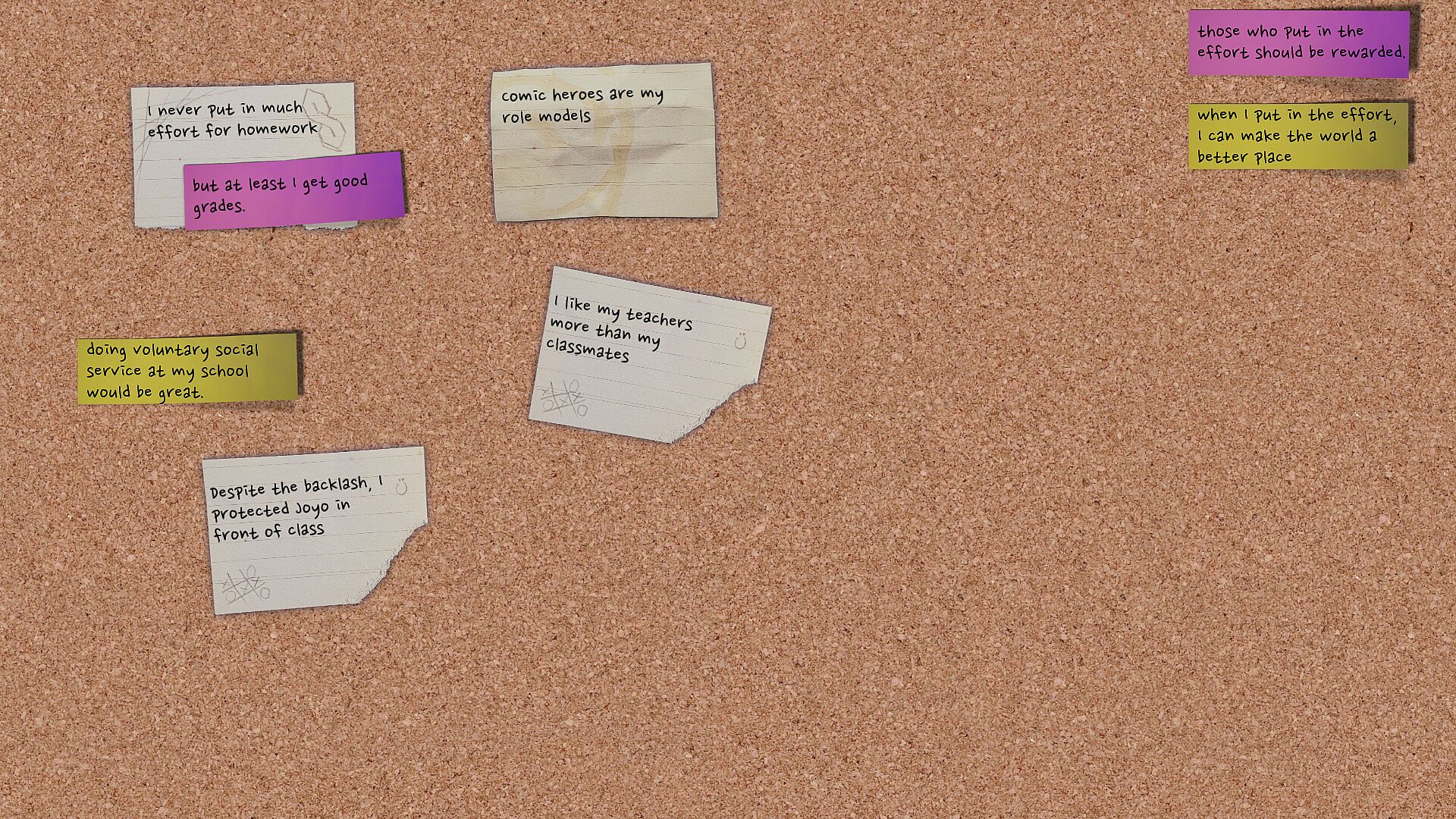While this game does its best to be accessible and kind, it also portrays burdens a normative society puts on kids, that are different growing up. You probably should not play this if you are looking for escapism. This game can be harsh sometimes, but it is driven by empathy and the desire to share authentic insights. Extensive content notes can be found in game and the manual. (see link list at the bottom right)