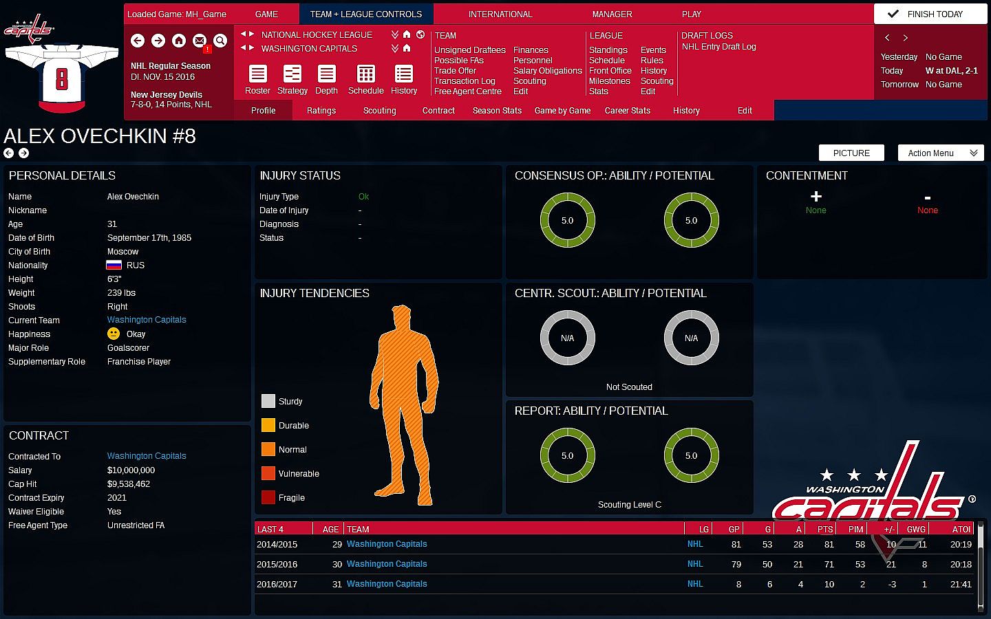Over the years, you gain experience and improve your skills until retirement beckons, hopefully with a few championships under your belt. You can carry on in your original game world with a new GM/coach or start fresh with a brand-new game.