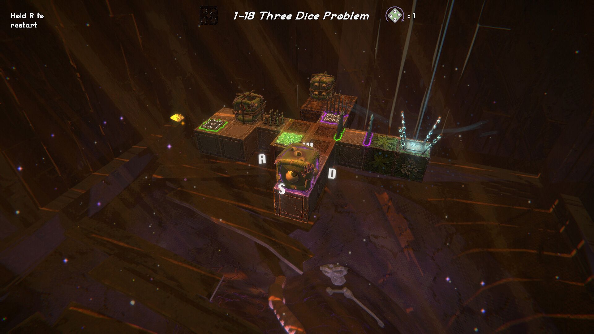 Utilize the surroundings to strategically rearrange your modular dice, adding a dynamic and interactive element to the challenge. Removing faces creates holes in your dice; rearrange them to allow for new movement options and swap them between different dice to match the challenges that lie ahead.