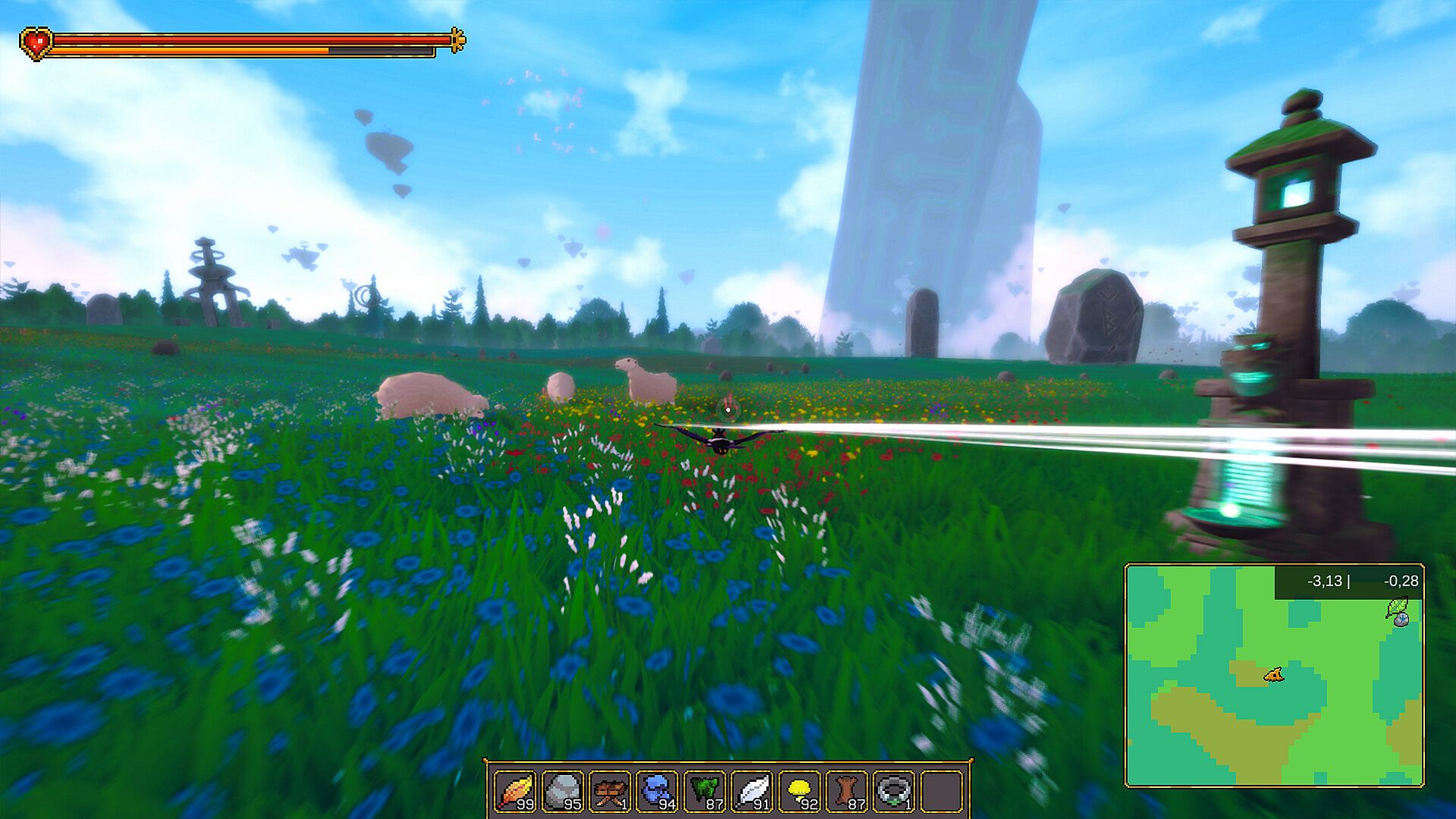 Uazo lets you play as a bird with near infinite flight, but it doesn't mean you can fly recklessly! Flapping your wings consumes stamina, consuming stamina makes your bird hungry, and if you're hungry, you can't fly for long. So glide to take a breath, dive and use magic! Be efficient so you can fly as long as you want!