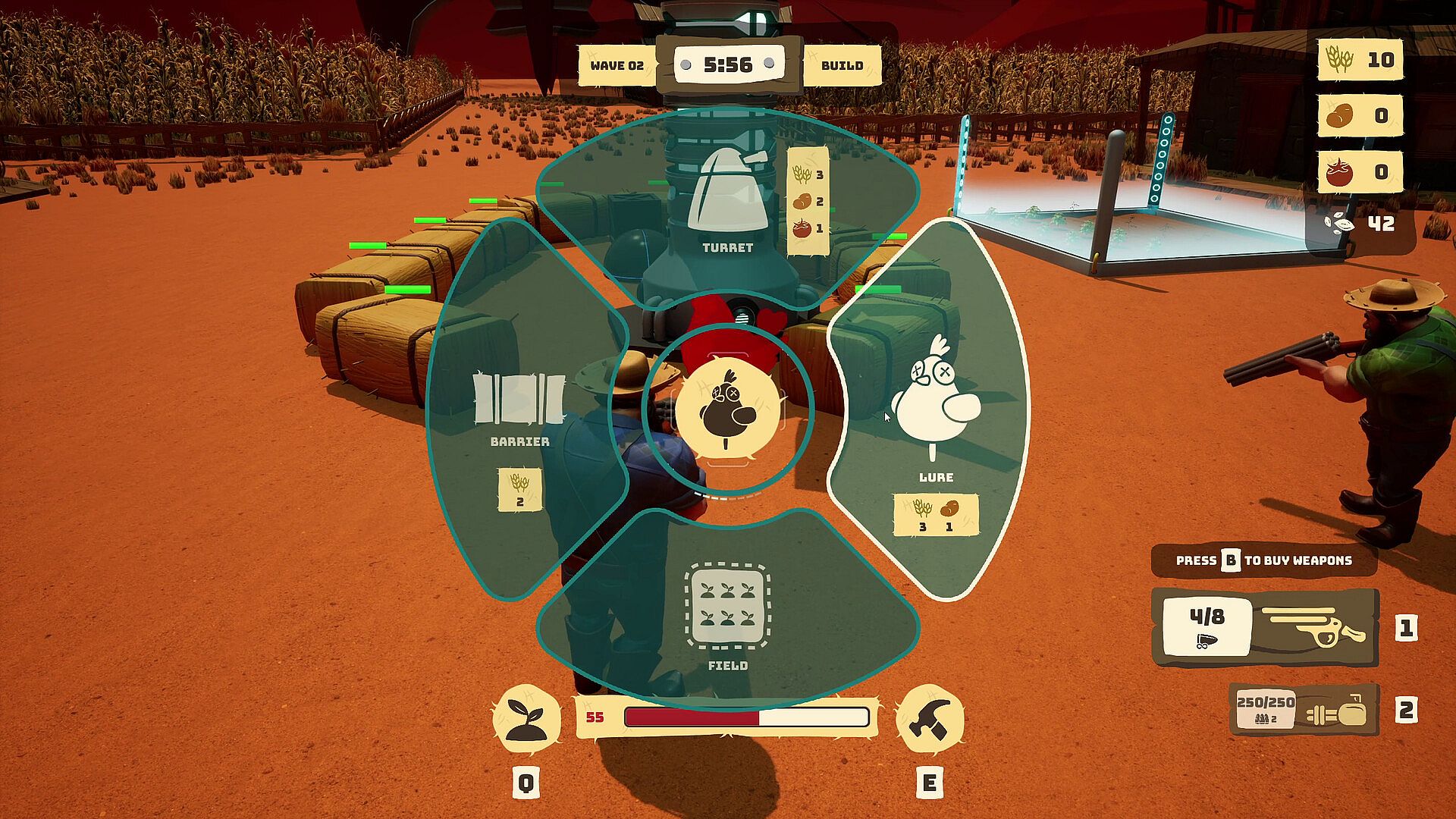 Daytime in Freedome Farmers revolves around agricultural tasks that directly support your defenses. You select optimal spots for fields, plant seeds, and monitor growth to harvest crops at the right moments. These resources fuel the construction and enhancement of quirky defenses, like automatic potato cannons or barriers that shred incoming enemies. Timing is crucial, as you need specific materials ready before nightfall to fortify your setup effectively.