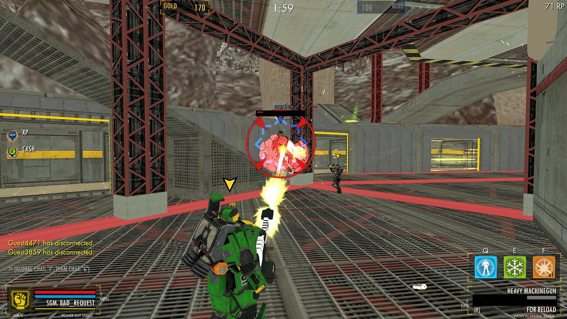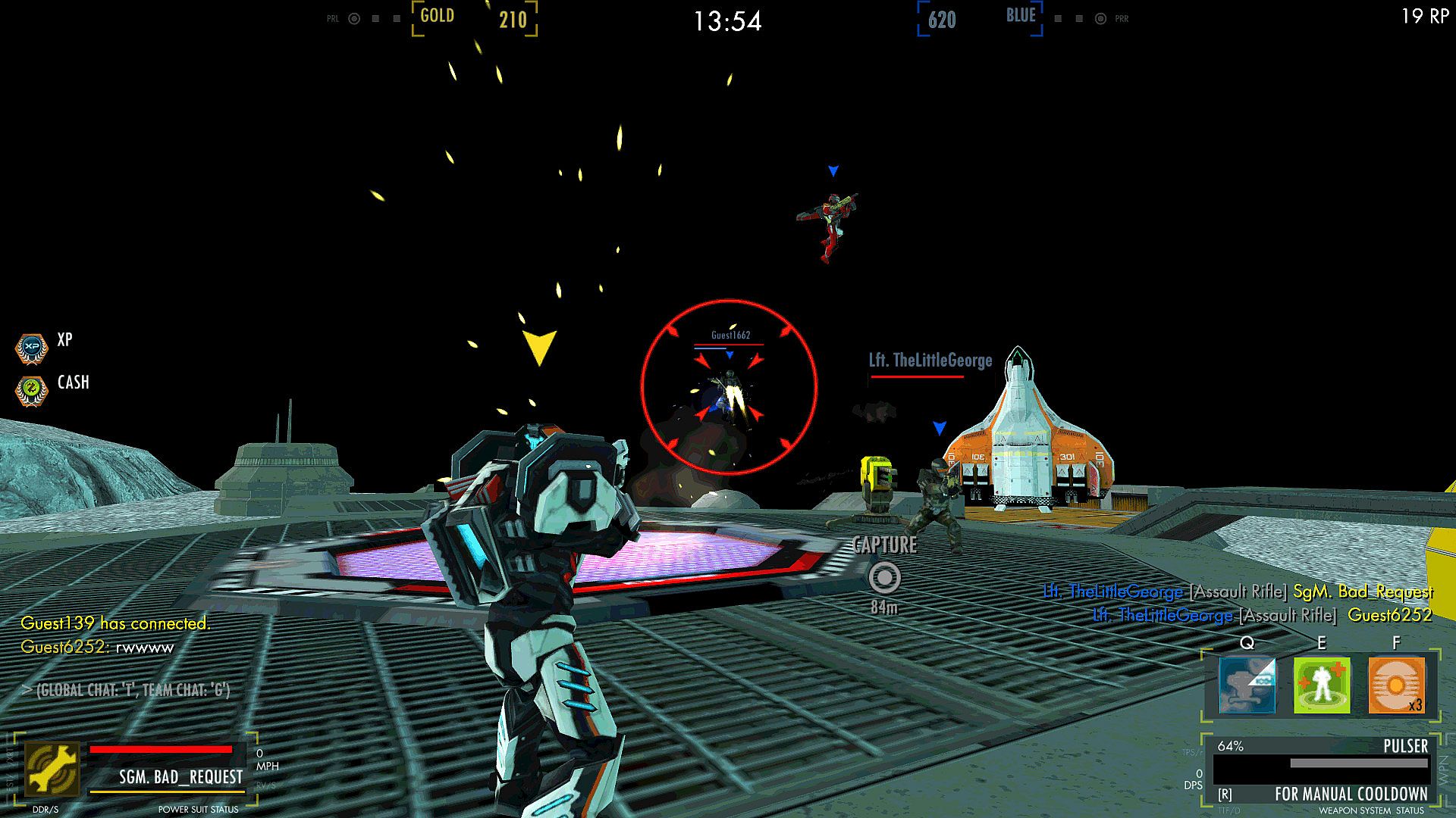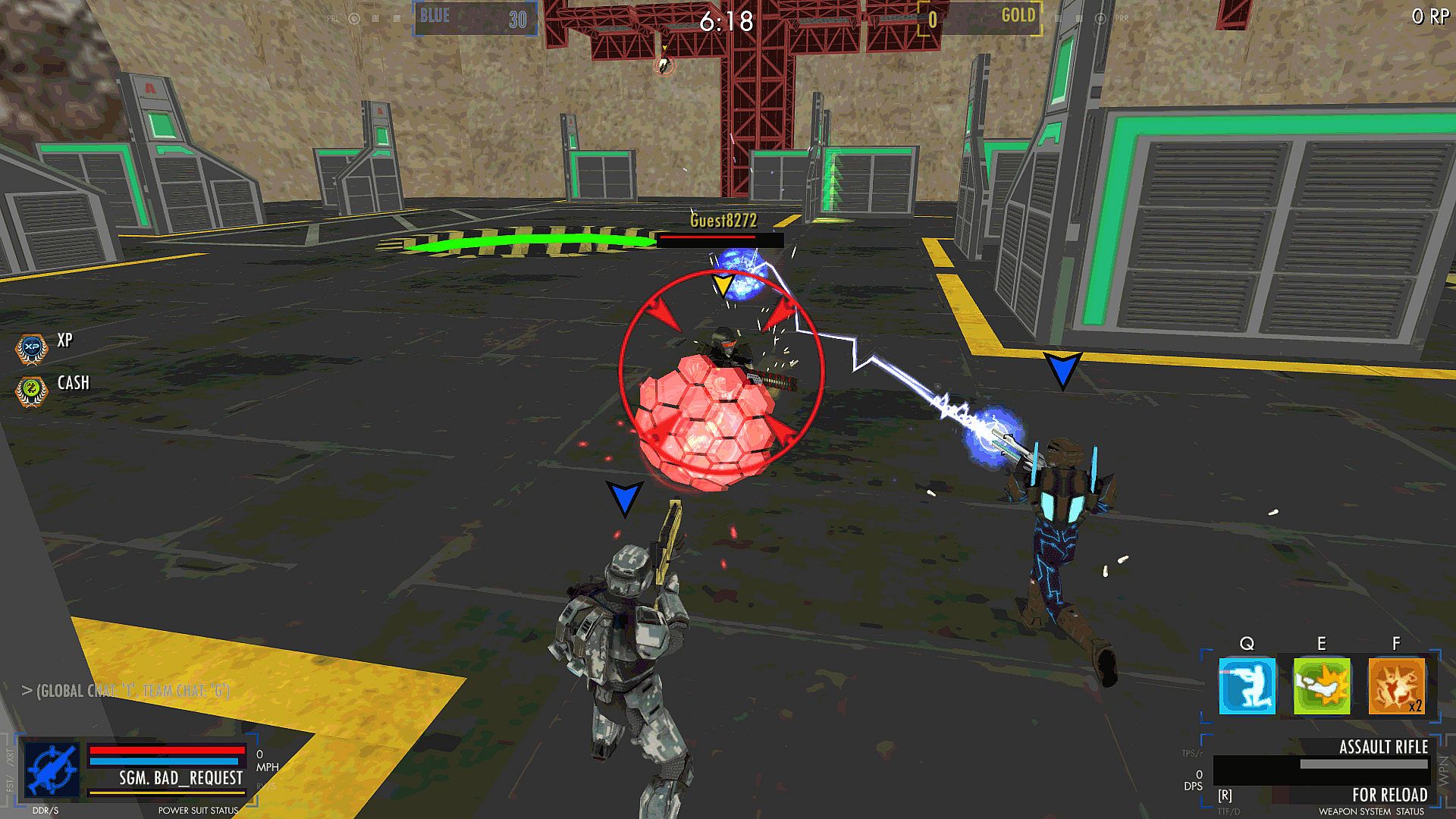 Intense, fast-paced, team combat. Animation and camera control that make you feel like a space marine...super human. Have it all: jetpacks, armor, hammers, swords, guns, bombs, in melee, ranged, and aerial combat. Tanks smashing with hammers, deadly Scouts slashing their enemies down the middle with their katana, different jetpacks for every class create dynamic aerial combat, Gunners sniping from across the map, and Tech healing and dueling while laying down turrets. Even throw f-bombs! All class specific jetpacks allow you to hop and bound across the map gaining momentum and speed.