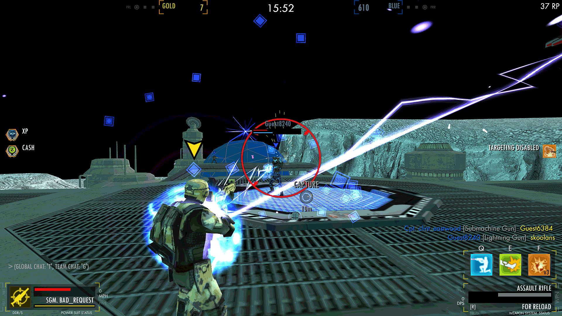 Two teams, Blue and Gold, compete to win matches. XP and Z Cash (the in-game currency) are given as rewards for players who complete matches. If your team wins you get more than if you lose. Players can start or quit a match at any time, but need to be present to the end in order to get rewards. Rewards are not given for individual kills.