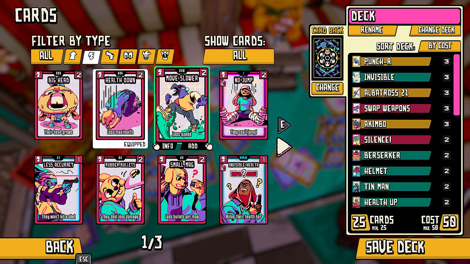 - Stack Your Deck: Collect weapon, trap, and curse cards, then level them up to increase their power.