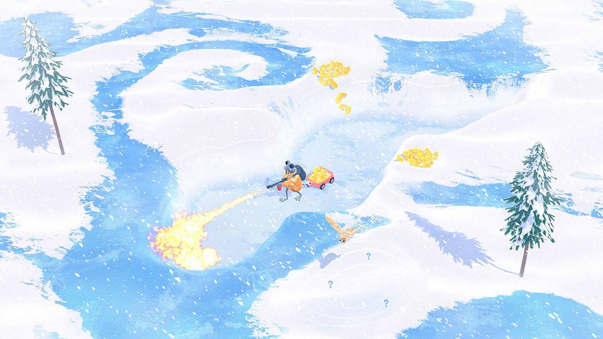Every snowbank can hide treasures, traps, or lurking enemies. Carve pathways through interactive snow, use it as cover in combat, or blast and melt it to uncover what lies beneath. Stay too long in the cold and you’ll freeze — unless you’ve unlocked the right upgrades!
