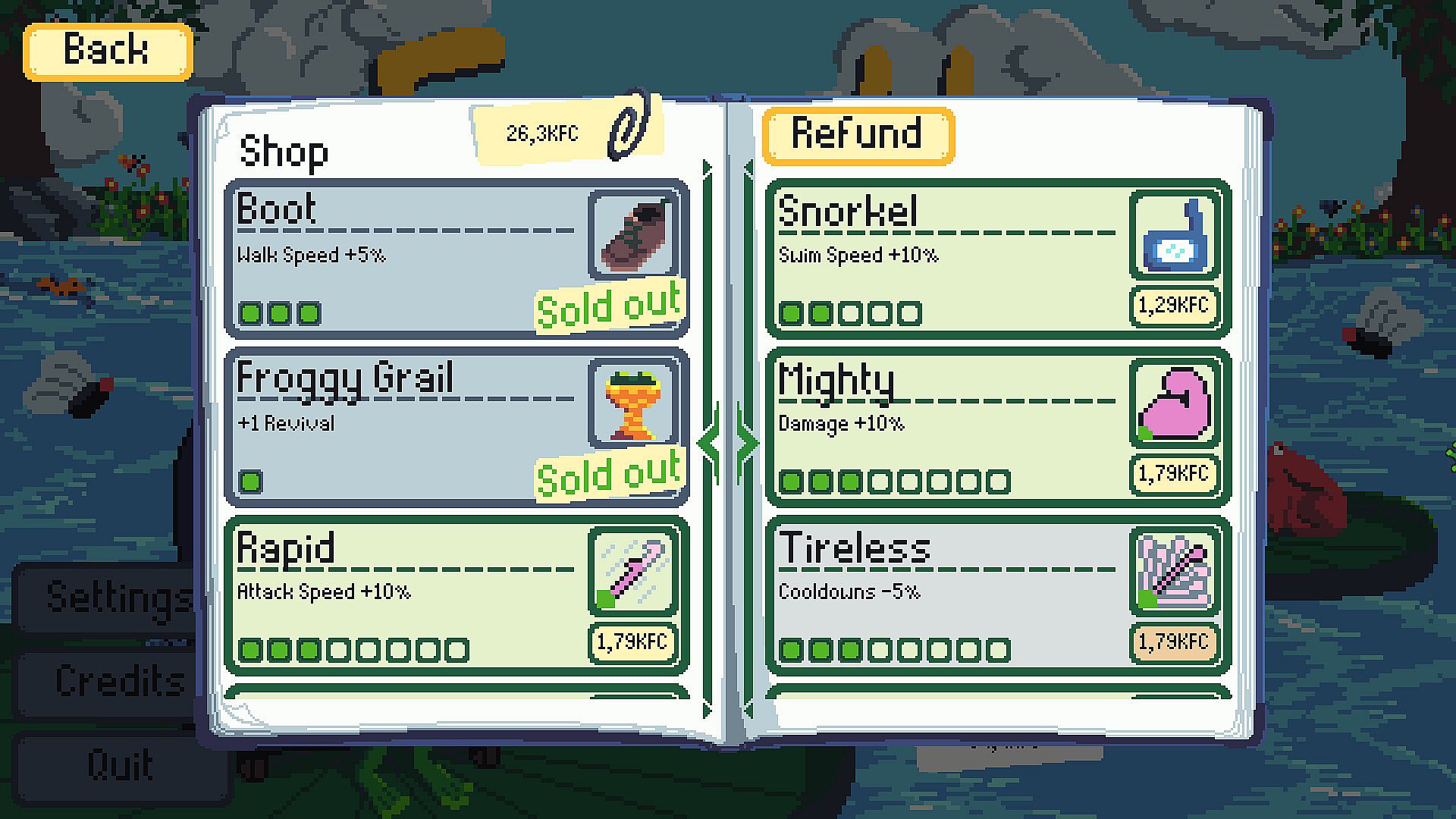 Inbetween runs you can use your hard earned froins in the shop to start your next run being even stronger!