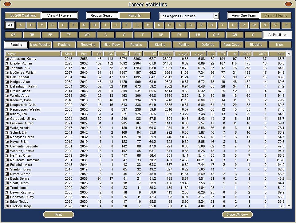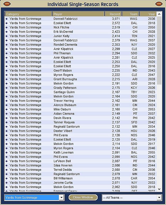 • Instant history (or at least history created as quickly as your computer can run). At the press of a button, you can generate up to 50 seasons of "history" for your league, with the AI running every team.