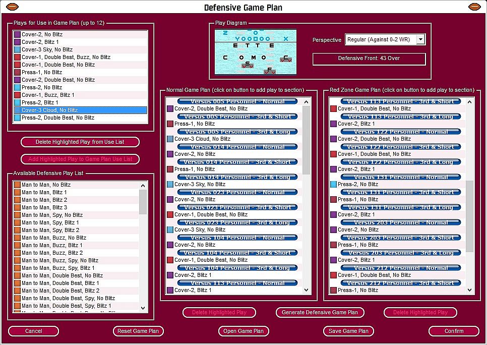 • More realistic game planning. Rather than filling out extensive charts, you can write scripts for the plays your team will run in every situation. Create a list of plays for use in the Two-Minute Drill. Save your best plays for those critical third-and-three situations. This is much closer to how professional teams handle in-game play-calling. On defense, your plan will cover how you react to what your opponent is doing. You'll have fewer choices to make, but the choices will have a big impact on performance.