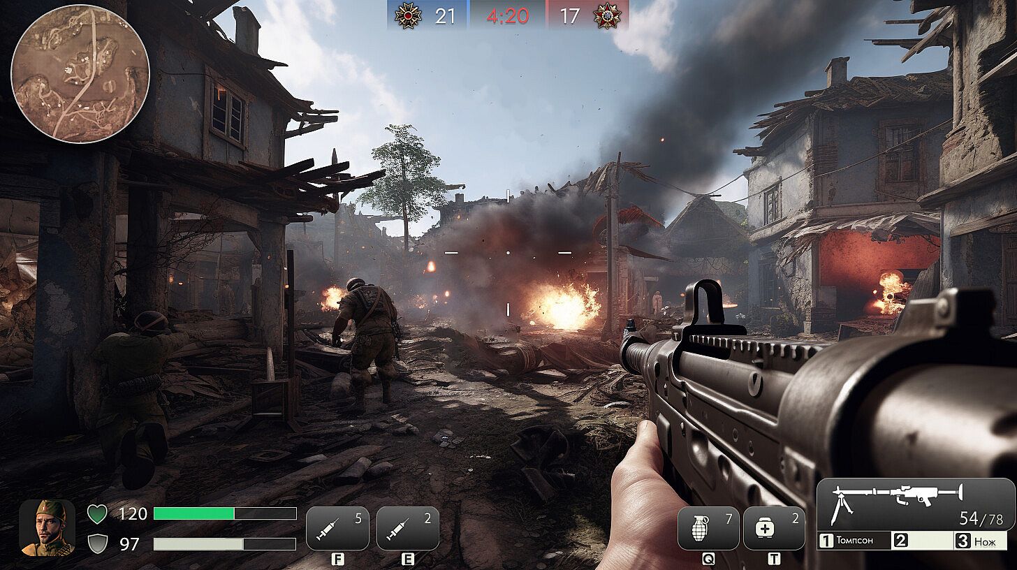 You will have to fight in various theaters of military operations, including city streets, trenches, snow-covered plateaus and other dangerous locations. Each place has its own characteristics and strategic advantages, which you should skillfully use in your actions.