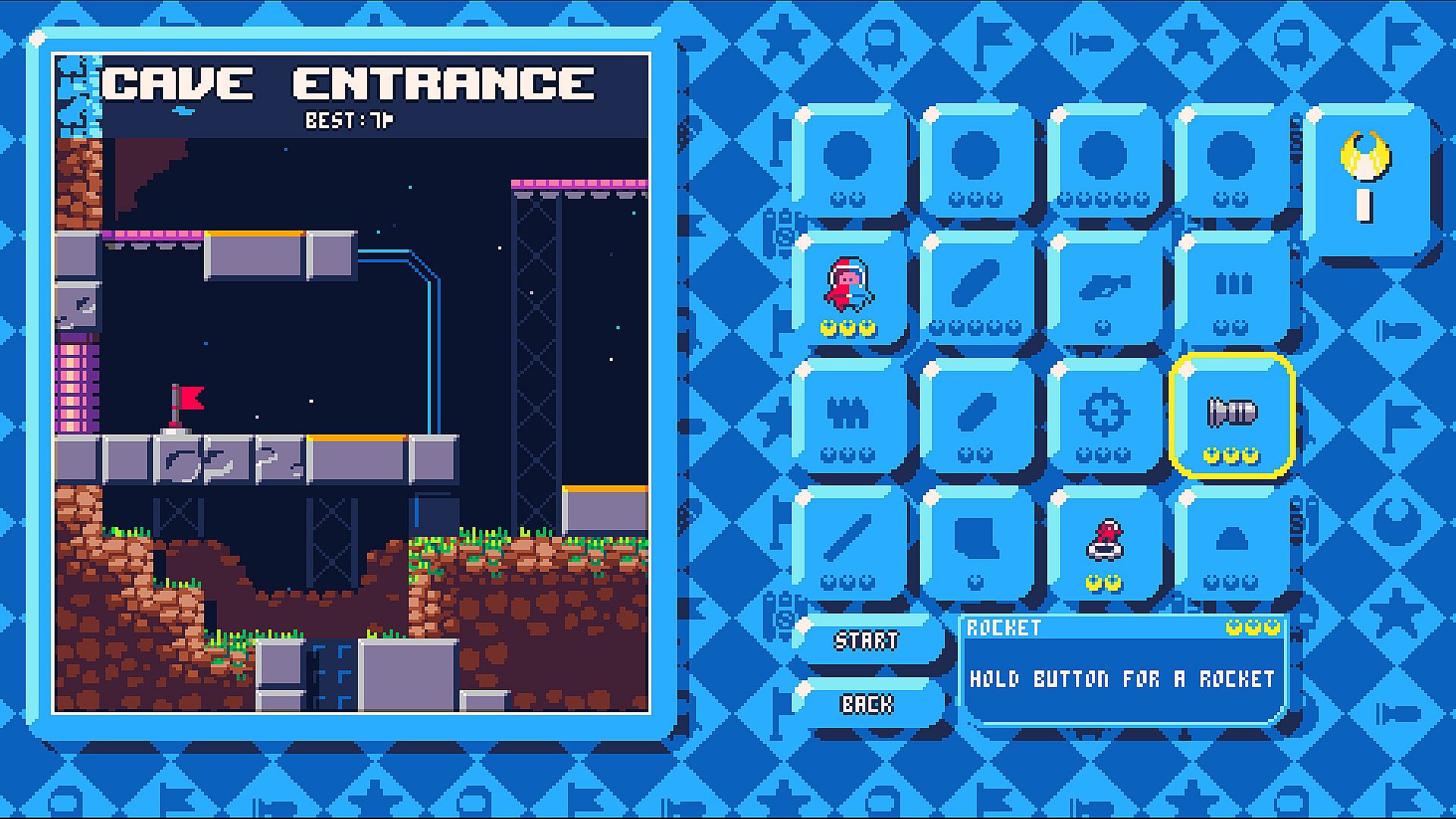 The game features 8 unique levels to progress through, from a radio tower, to the warping crystal mines and the low-gravity asteroid fields. Toggle and combine upgrades with your medal budget, and revisit the different levels to earn even more medals!
