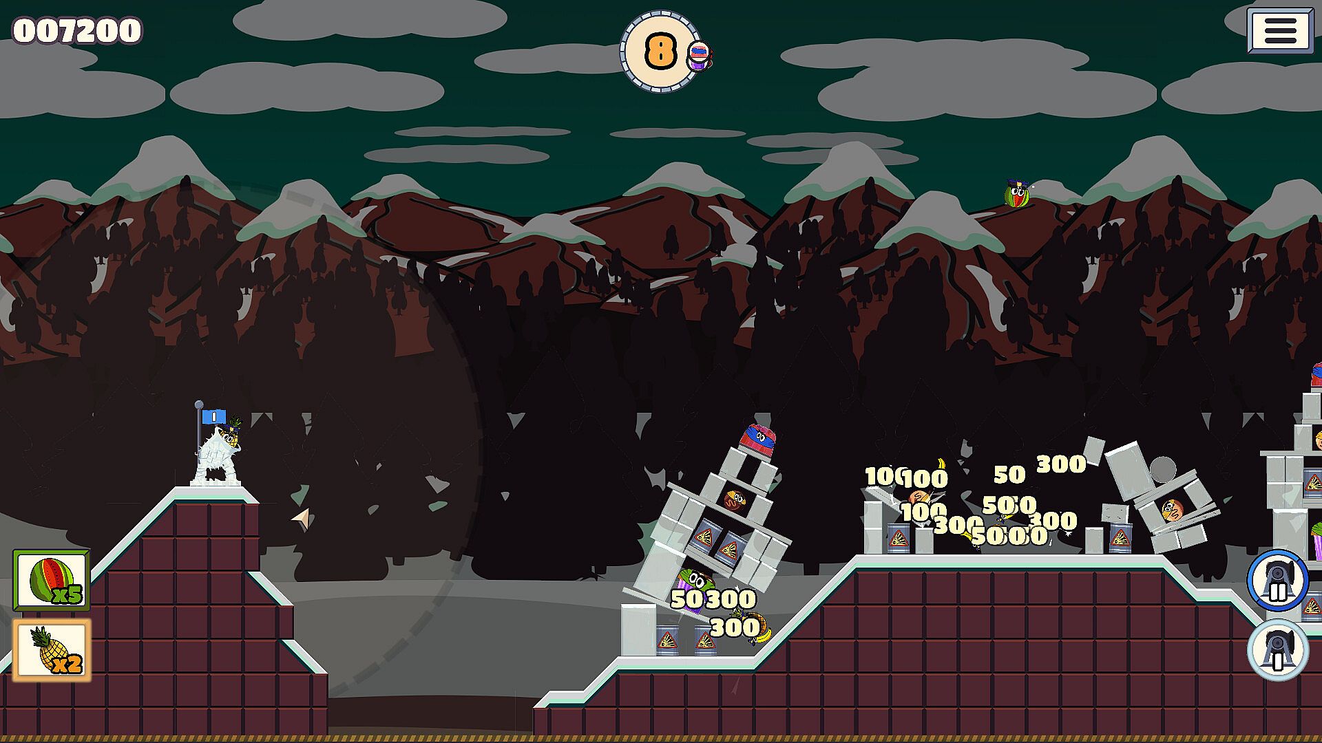 • Skill based unlockables: A variety of additional hats to adorn your fruit, and launchers to fire them from can be unlocked.