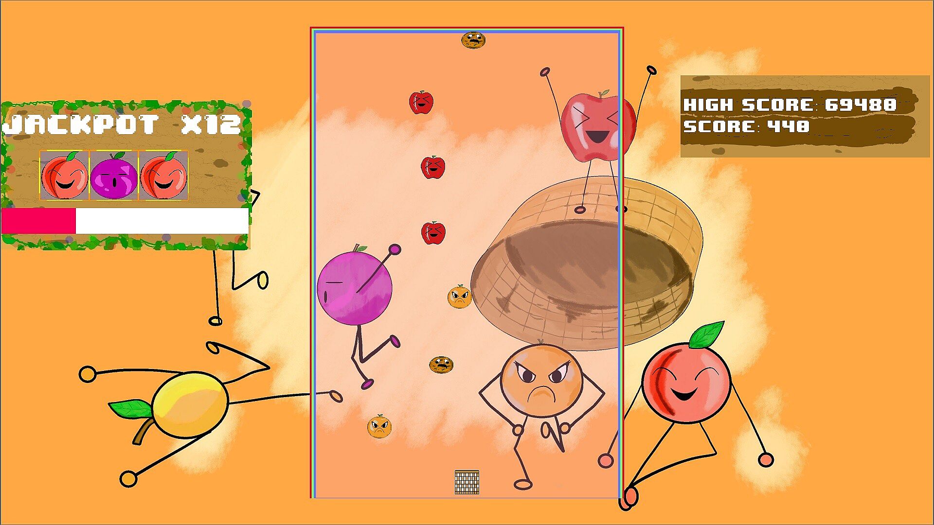 Jump into the fruity frenzy of Fruits Power Up! Catch falling fruits in your trusty basket to stack up points, with each fruit bringing its own score. Steer clear of rotten fruits to keep your game going strong! Collect enough fruits to unleash a thrilling Jackpot, where lucky fruit combos can spark a point-multiplying frenzy for massive rewards. Test your reflexes, aim for high scores, and master the art of fruit-catching in this vibrant, fast-paced arcade adventure!