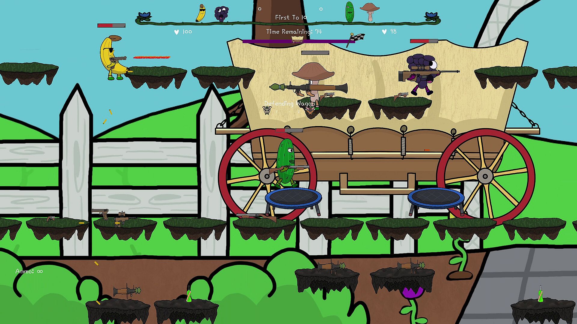 Looking for an online party game where you can blow up a formidable banana foe with a stick of dynamite? How about one where you can trick a cucumber into stepping on a landmine? Perhaps you'd prefer hiding in a bush while an orange hunts you down with a shotgun? Or would you instead like to race against a radish through a dangerous obstacle course?