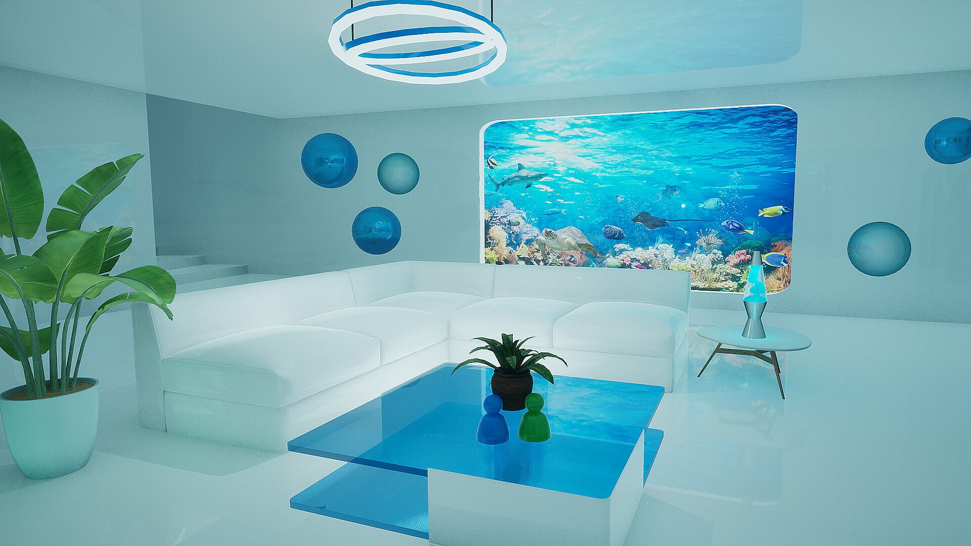 Take in the futuristic frutiger aesthetic in your newly decorated home!
