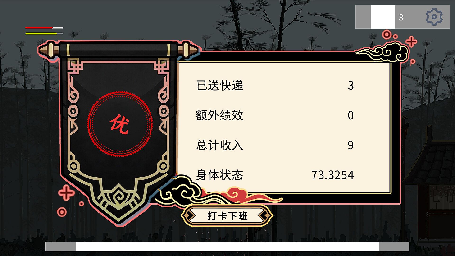 这是一款融合了资源管理的武侠风格跑酷游戏,你将扮演新加入某血汗镖局的见习镖师,穿梭于市井楼阁,把食盒送到各位官人手中。