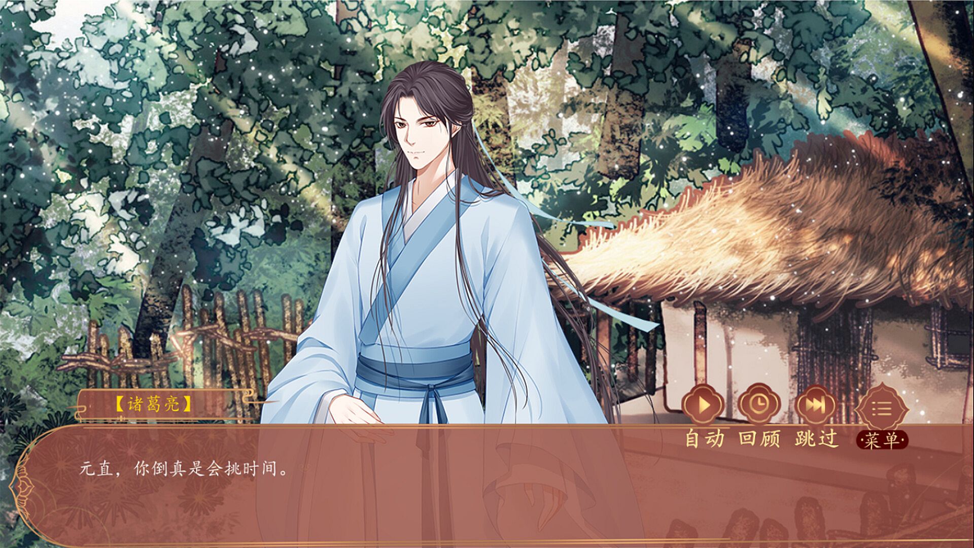 有卧龙之称的名士,英挺俊伟,潇洒出尘。举止间难掩清贵之气。自视甚高,才智过人。后为蜀汉王朝的丞相。同时也是在朝内呼风唤雨的权臣。虽然总带着文雅的笑容,却给人难以亲近的感觉。而那双黑眸中更是始终闪动着某种灼热的光芒。