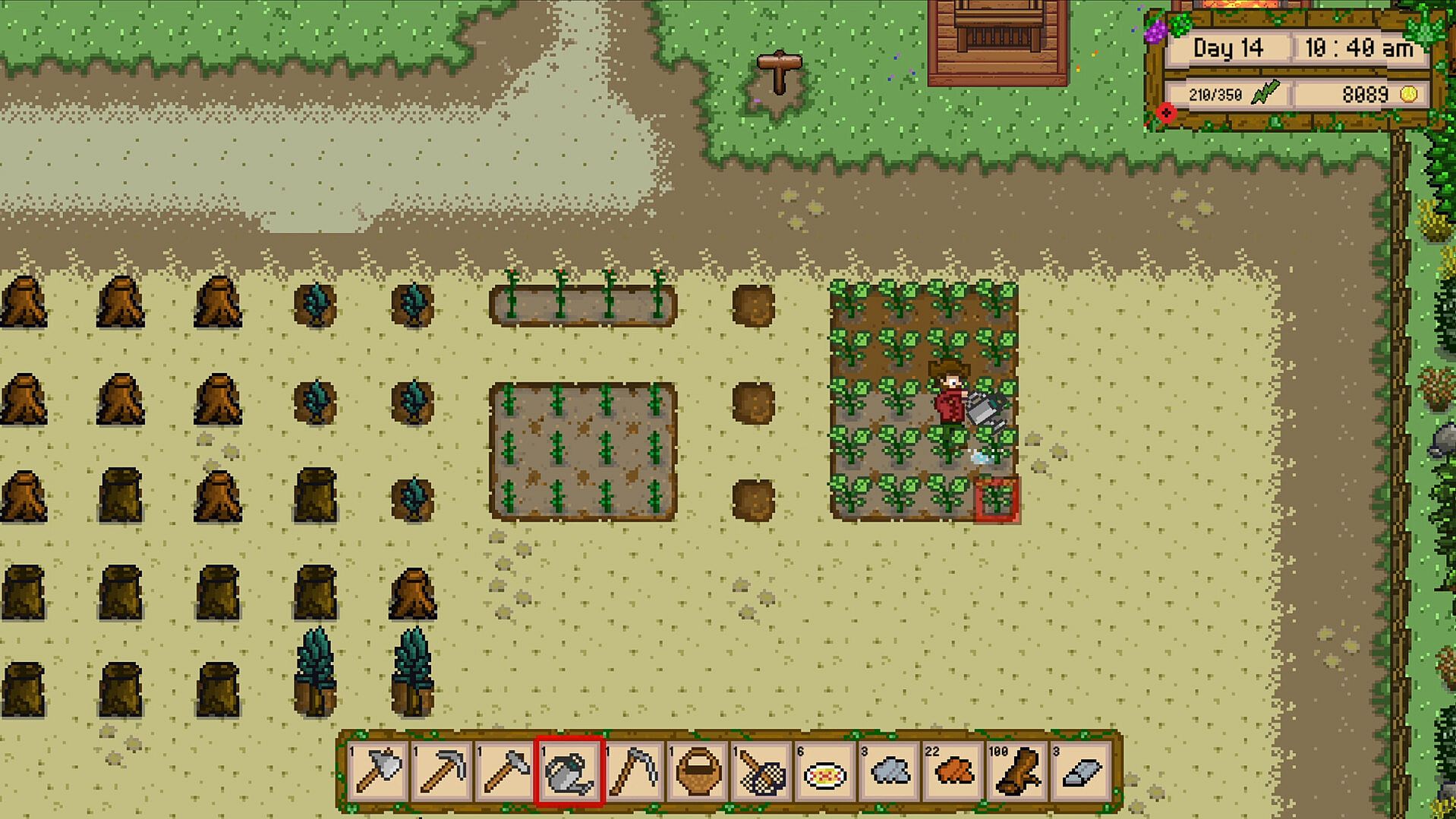 Use the resources you gather and the metal bars you've smelted to craft items to help you out around the farm: