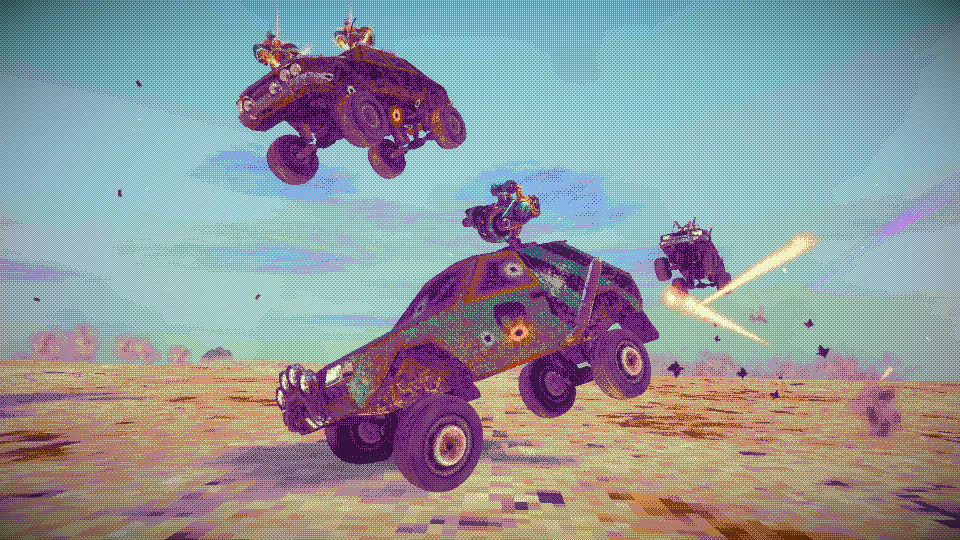 • Fight with giant bosses - monstrosities on wheels.