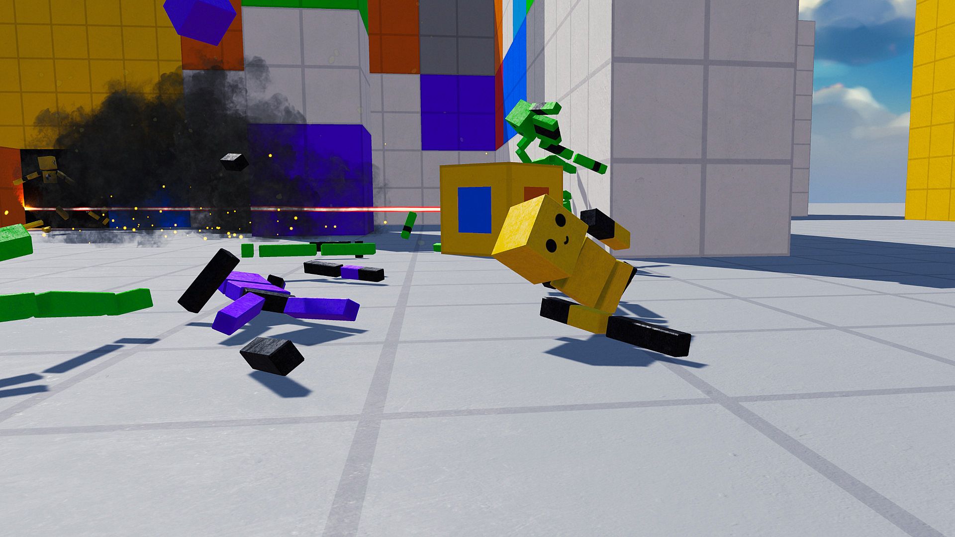 Build worlds for you and your ragdolls! Choose from a collection of Cannons, Black Holes, giant Fans, Ragdolls (obviously), Mines, Lasers, Cars, Jump Pads, Telepads, glass, destructible Pillars, Lasers, and more! I can't name everything cause it'd take up too many characters...