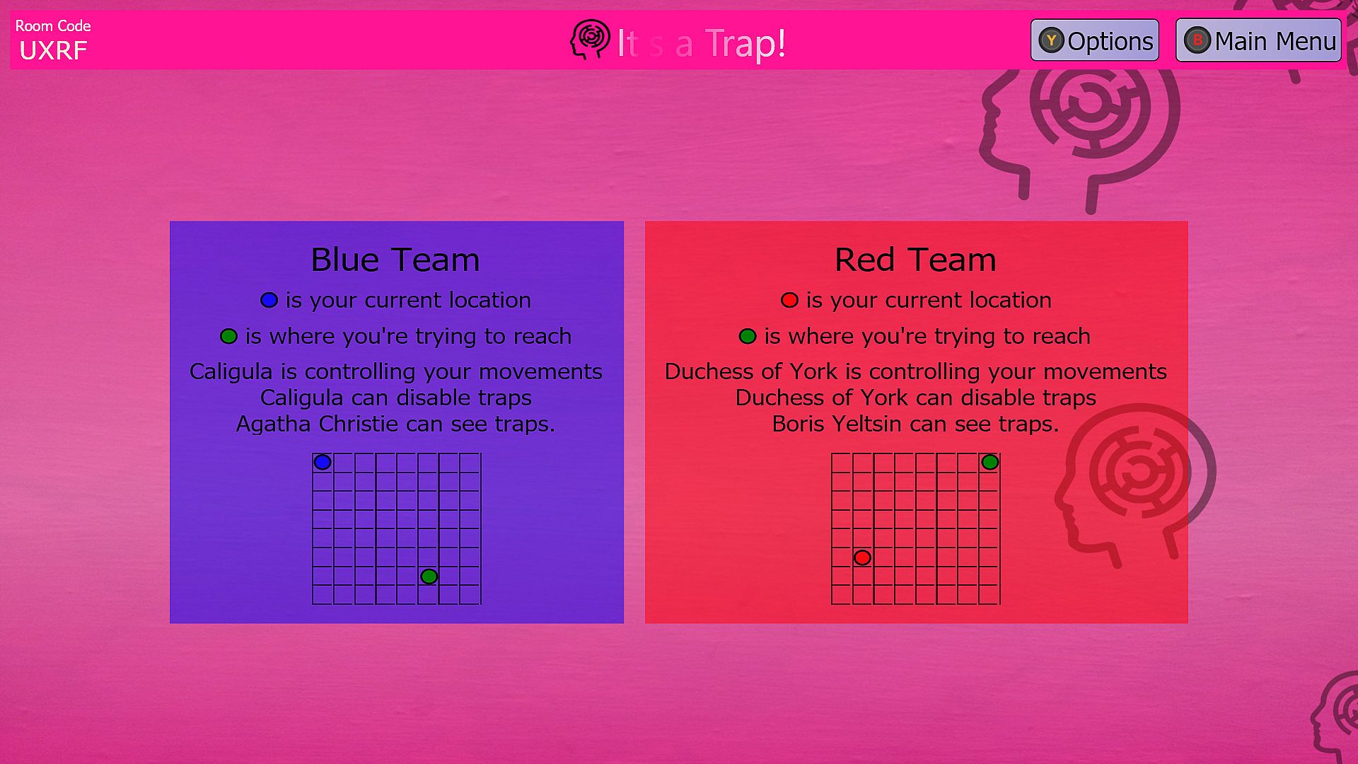 In It's a Trap! (3+ players on 1-2 teams), work with your teammates to get through a trap-filled maze when you each have limited information!
