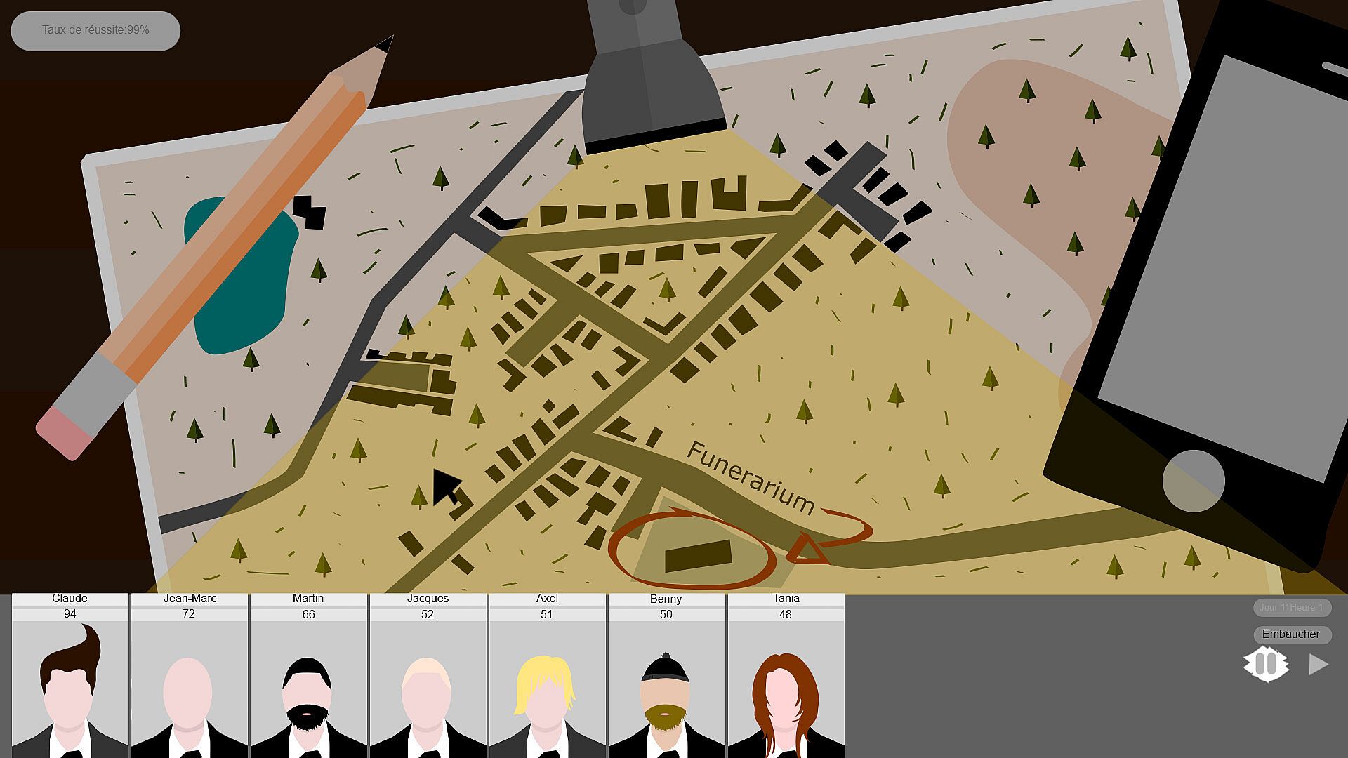 Funeral Manager is a resource management, strategy, and team composition game driven by a story full of twists and turns.