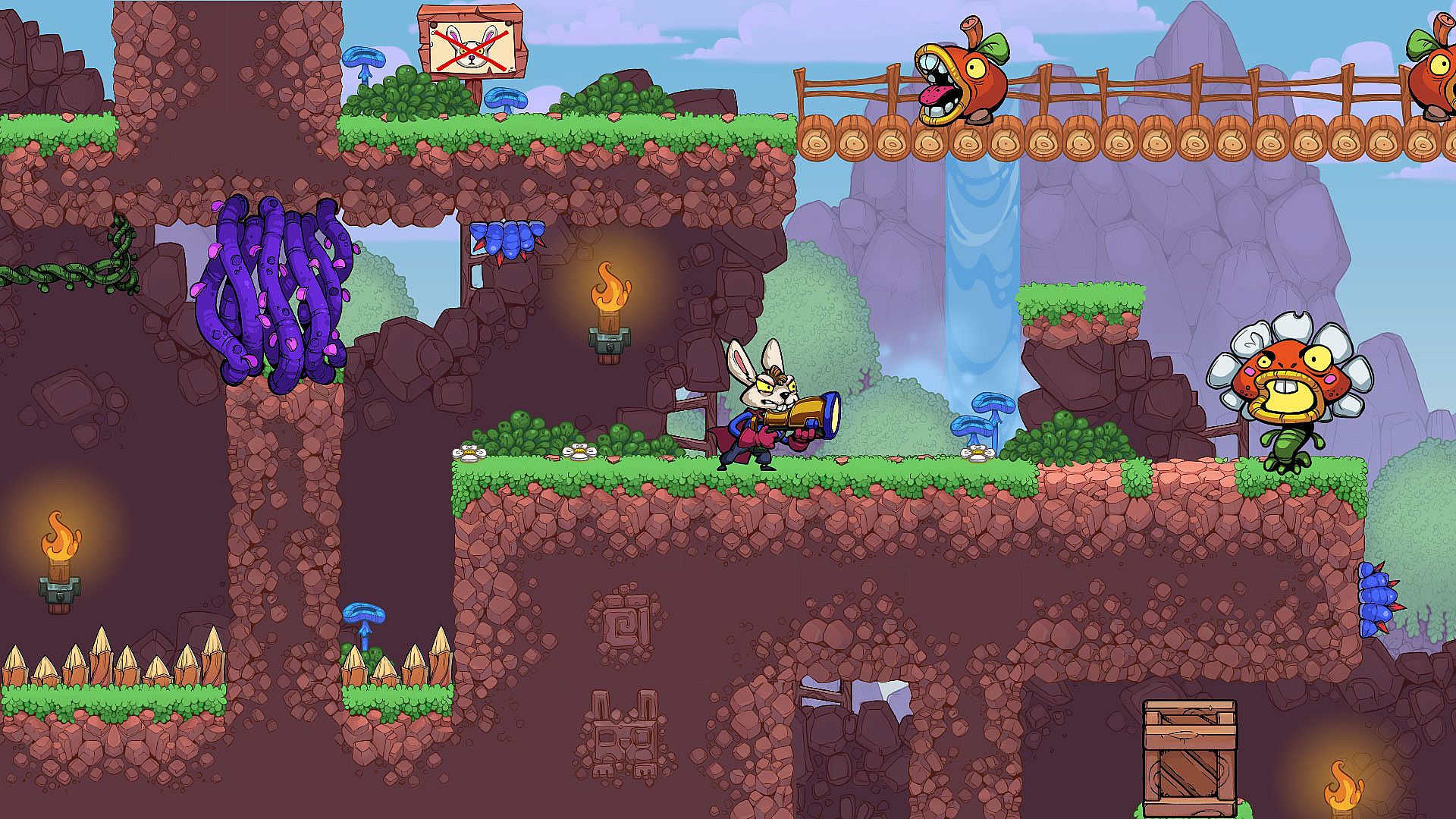 Funny Bunny Gun is a Metroidvania platformer in a cartoon style, featuring an adventure of a rabbit warrior Pooh.