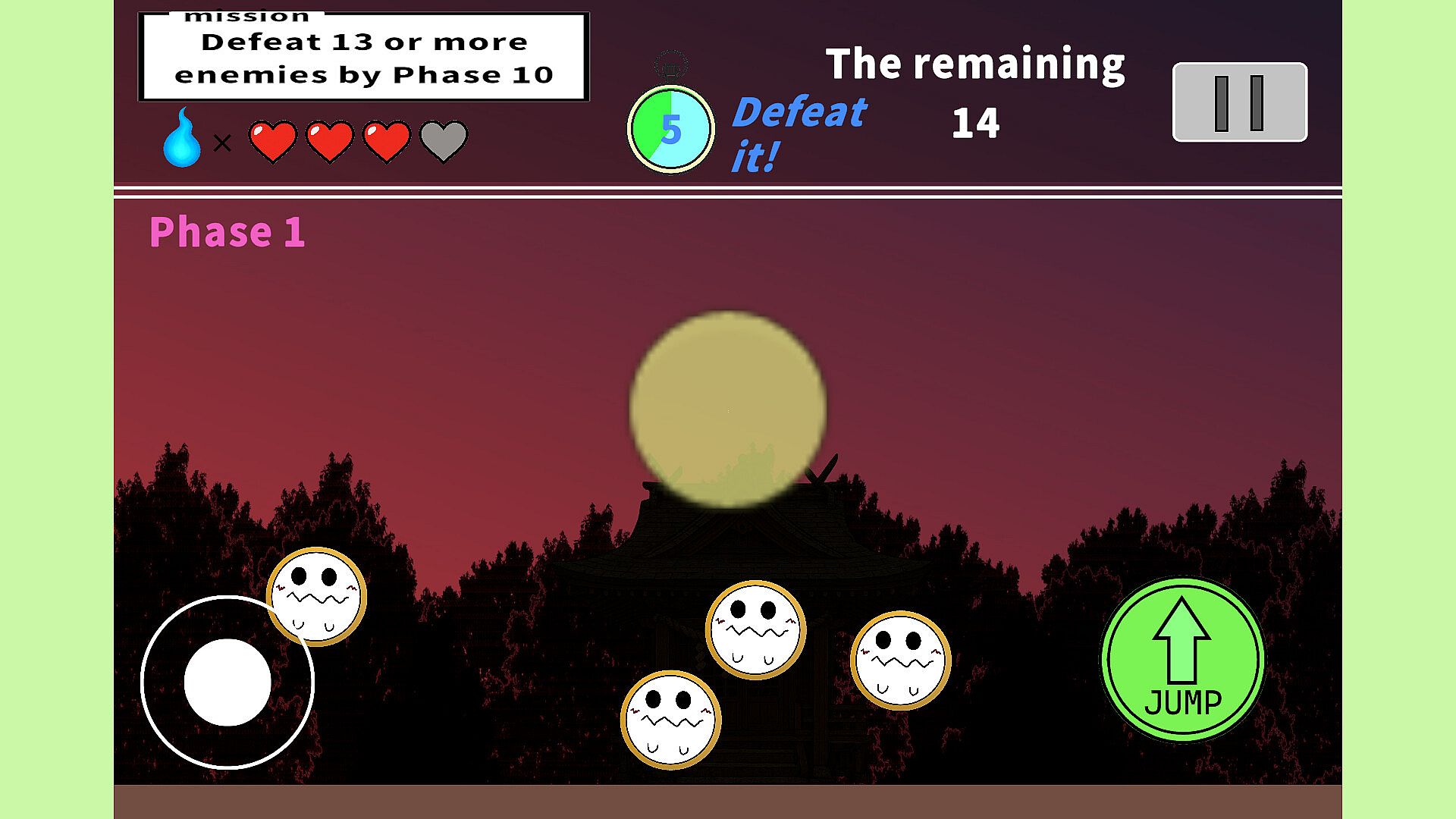 Achieve different clear conditions for each stage by defeating or escaping from various types of ghosts. As you progress through the stages, it becomes more difficult to clear. You may not be able to clear the stage just by defeating the enemies.