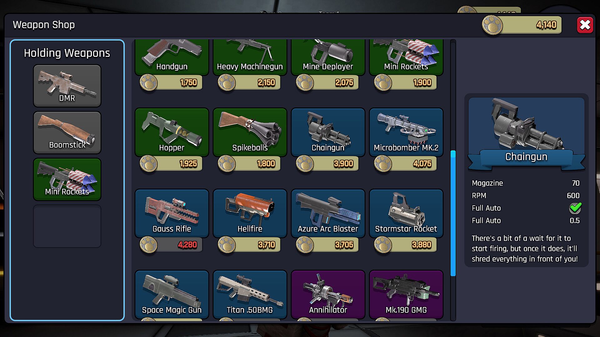 Weapons, weapons, more weapons!