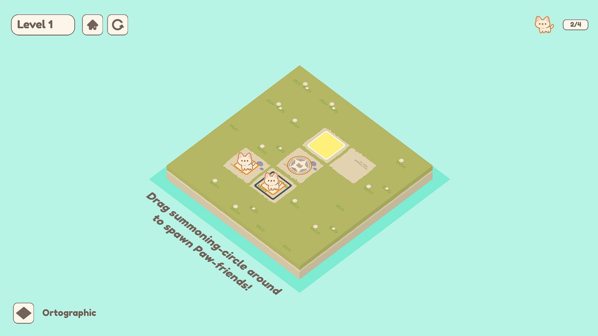 Spawn Paw-friends by dragging the summoning circle around the tiles. Combines the summoning circles to create a new mix and reach the target to complete the level. Each animal have some unique requirements to be spawned, adding more complexity to the puzzles. Can you solve all the puzzles?