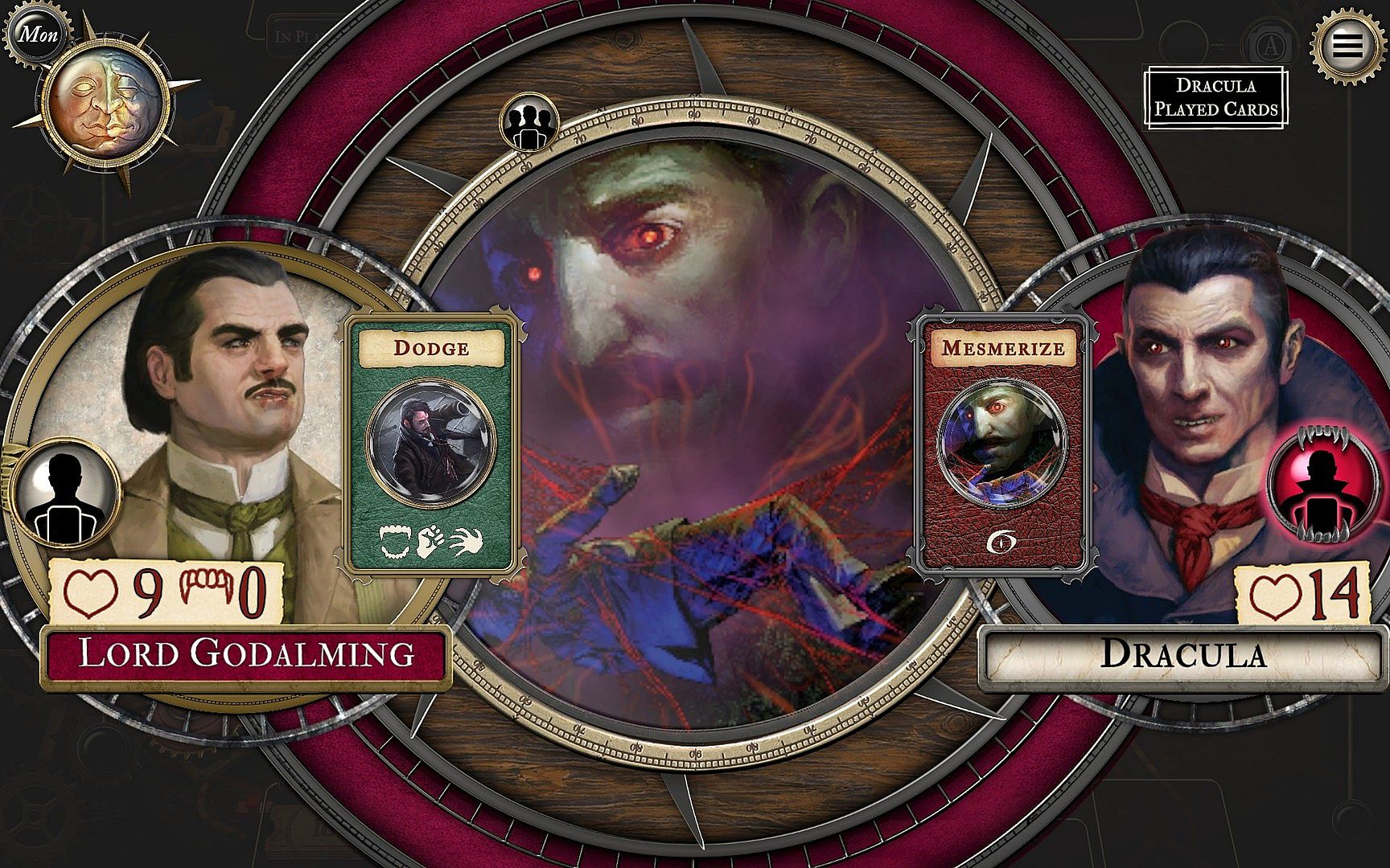 Once the hunters and Dracula finally clash, bloody and gruesome combat ensues. Nobody is safe as Dracula lashes out at his pursuers, and the hunters battle against the inhuman and immortal Count. Featuring a card-based combat system that rewards bluffing and tactical choices, no two clashes are the same.